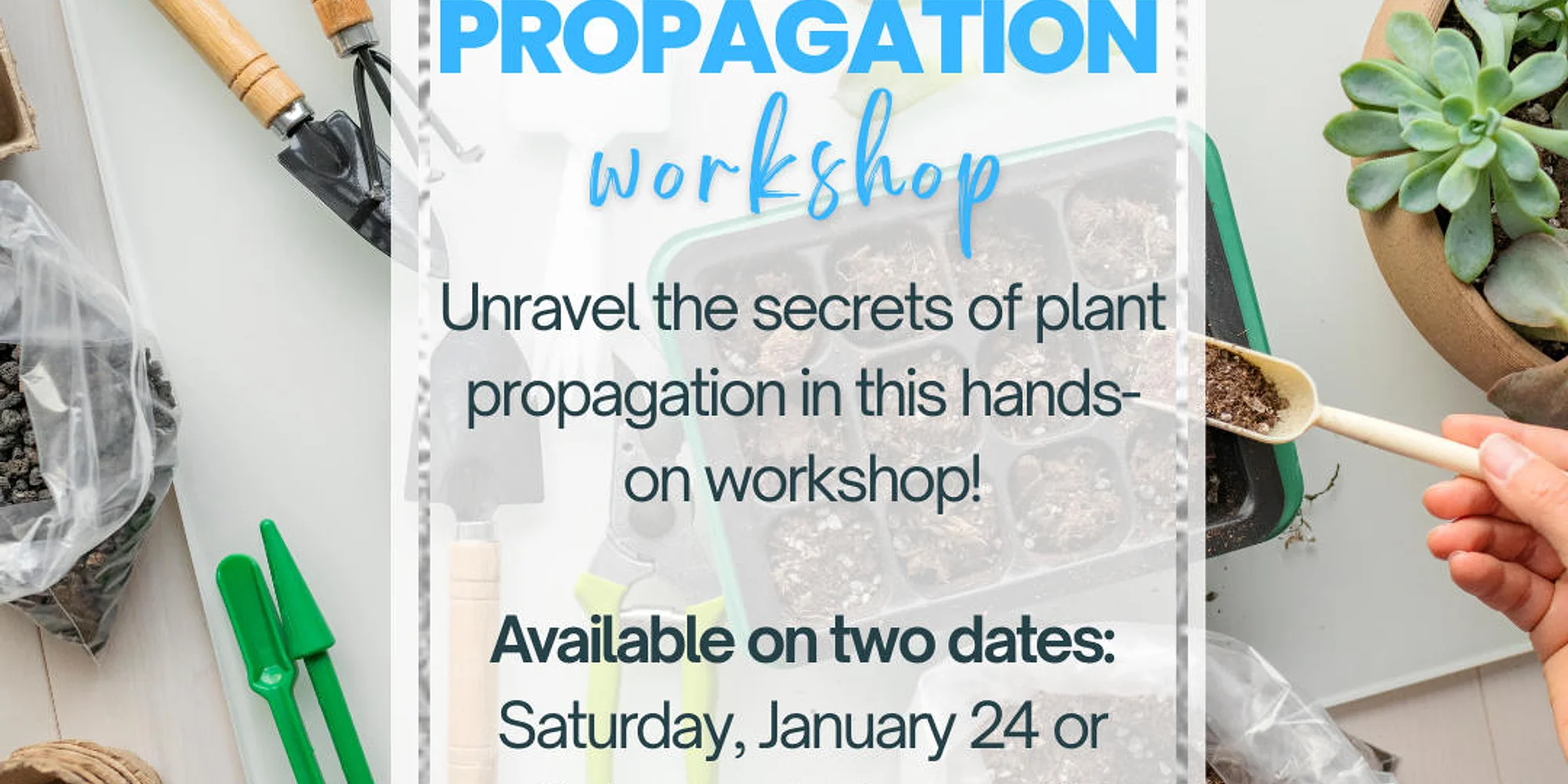 January 24, 2026 OR February 7, 2026 10:30 AM- 11:30 AM Members: $40 Non-Members: $45 Adult Class Registration Required Taking the Mystery Out of Plant Propagation Unravel the secrets of plant propagation in this hands-on workshop! Learn how to turn one plant into many using cuttings, division, and layering, and discover the ABCs of seed collection, storage, and germination. You’ll get to practice each method during the class, and you’ll head home with your very own propagated cuttings to grow and nurture. Be sure to sign up as reservations are required!