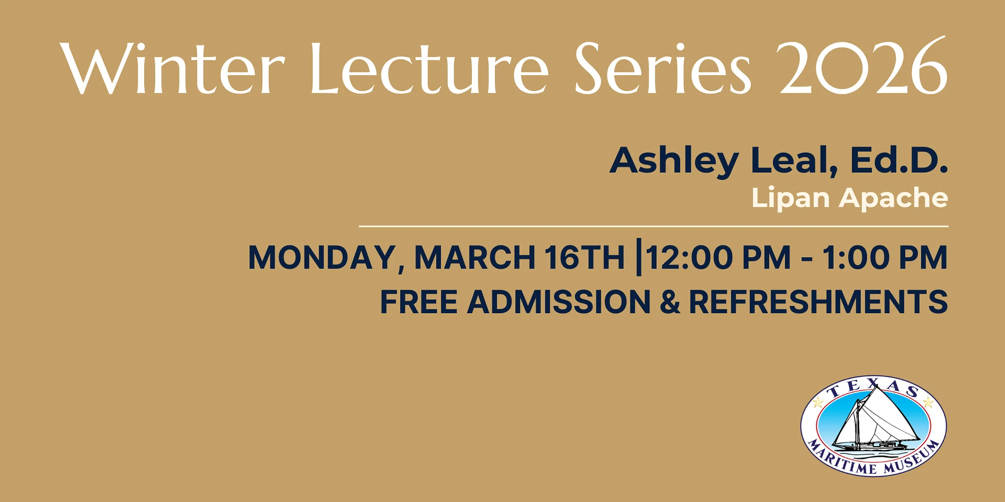 Join us for a meaningful and informative program in our Winter Lecture Series with “Lipan Apache,” presented by Ashley Leal, Ed.D., on Monday, March 16th, from 12:00 PM to 1:00 PM. This lecture offers an introduction to the history, culture, and enduring legacy of the Lipan Apache, one of the Native peoples with deep roots in Texas and the surrounding regions. Ashley Leal, Ed.D., will share insight into the Lipan Apache experience, exploring their traditions, resilience, and continued presence in Texas history. The presentation invites audiences to gain a broader understanding of Indigenous history and its vital role in shaping the cultural landscape of the state. Accessible to a wide audience, this lecture combines historical context with thoughtful discussion and interpretation. A Q&A session will follow, providing attendees the opportunity to ask questions and engage directly with the speaker. Admission is free, with donations gratefully accepted. Attendees are invited to enjoy coffee and light refreshments, generously provided by H-E-B and Duck Blind Coffee, whose sponsorship helps make this Winter Lecture Series possible. View all upcoming museum events to see what else is happening at the Texas Maritime Museum. Stay Connected Don’t miss this or any of our other exciting lectures, educational workshops, or special events. Follow the Texas Maritime Museum on social media for updates and inspiration: Facebook | Instagram | Subscribe to Our Emails Spend your Monday lunch hour learning about the Lipan Apache and their lasting impact on Texas history.
