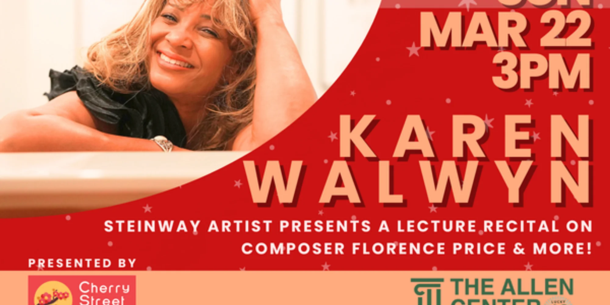 Steinway pianist Dr. Karen Walwyn returns to The Allen Center for an illuminating lecture-recital celebrating the incredible life and works of Florence Price. A leading expert on Price’s music, Dr. Walwyn recorded the world premiere of Price’s Concerto in One Movement with the New Black Music Repertory Ensemble at the Center for Black Music Research in 2011. Her April 9, 2022 release of Price’s complete solo piano works garnered two five-star reviews from Fanfare, with critics praising her as “perfectly attuned” to the composer’s voice and describing the recording as “a marvelous release.” Dr. Walwyn serves as a Mellon Faculty Fellow and Professor of Music at Berklee College of Music. We hope you’ll join us for this special opportunity to hear Walwyn’s brilliant and exciting interpretations of Florence Price. Click here to reserve tickets.