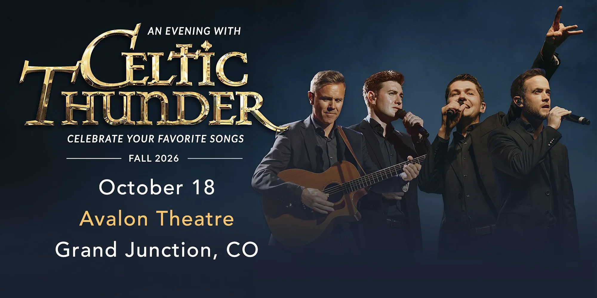 Doors open at 6:00PM | Music starts at 7:00PM Since their debut in Dublin in 2007, Celtic Thunder has captivated audiences around the world with powerful vocals, rich Celtic heritage, and spectacular live performances. Featuring a dynamic lineup of vocalists from Ireland and Scotland, the group blends traditional Irish and Scottish folk songs with contemporary favorites, creating a sound that is both timeless and electrifying. The current cast—Emmet Cahill, Neil Byrne, Damian McGinty, and Ronan Scolard—brings a mix of solo artistry and ensemble harmony to the stage, backed by the acclaimed Celtic Thunder Band. Their productions are known for dramatic lighting, evocative staging, and an atmosphere that celebrates Celtic storytelling and musical tradition. Over the years, Celtic Thunder has released numerous chart-topping albums and DVDs, toured internationally, and earned recognition as Billboard’s Top World Music Artist multiple times. With more than 1,000 performances worldwide and millions of devoted fans, the group continues to deliver unforgettable live experiences. At the Avalon, An Intimate Evening with Celtic Thunder will showcase some of the group’s most beloved songs, blending powerful harmonies, nostalgia, and the warmth that longtime fans have come to love. Get Tickets