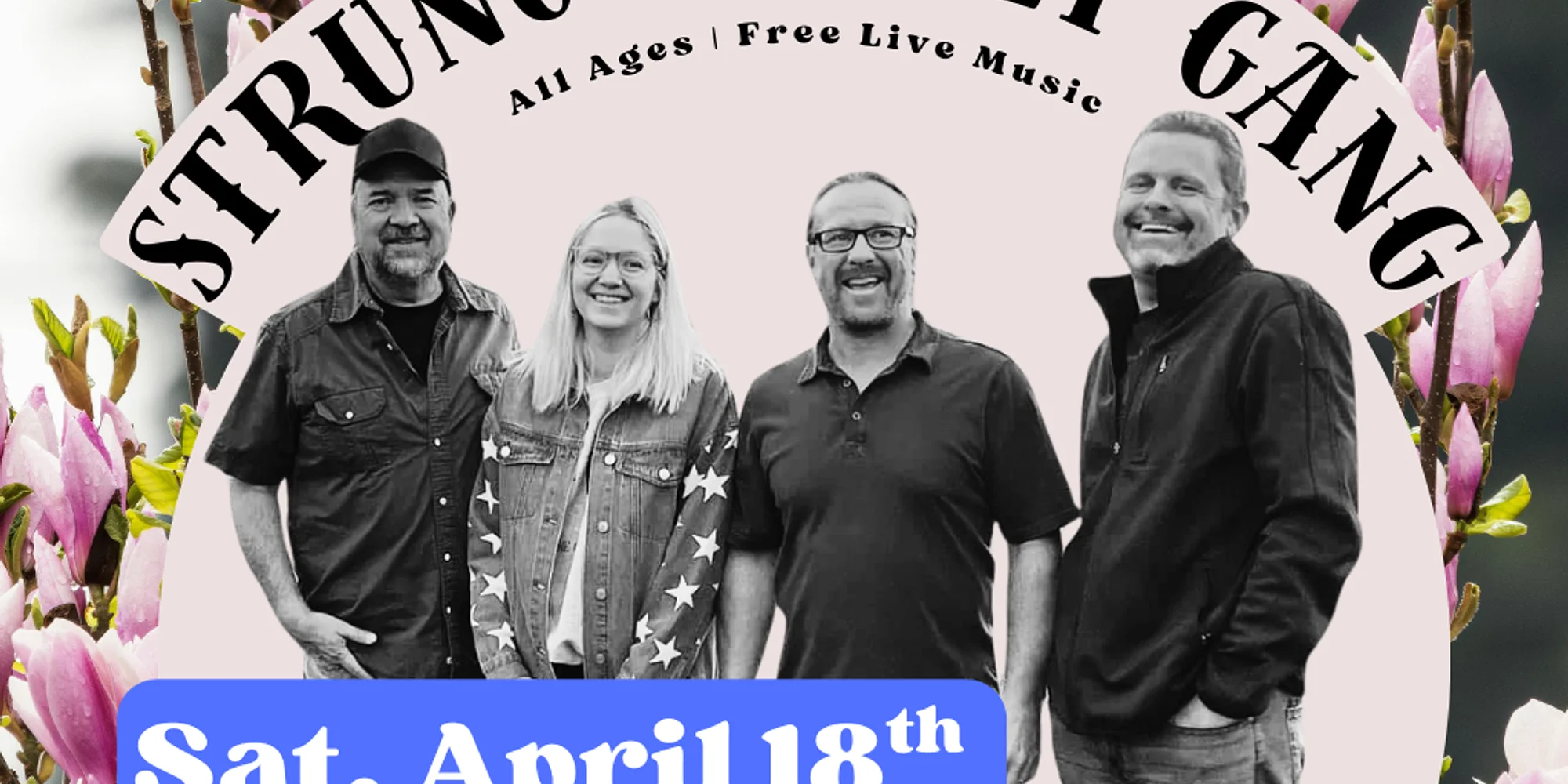 The Strung Nugget Gang has been bringing high-energy, genre-hopping music to Northern California audiences since 2012. Blending rock, bluegrass, Americana, swing, and original tunes, their shows are full of surprises and crowd-pleasing grooves. With Scott Grigoruk, Brett Johnson, Chelsea Codorniz, and Zach Mundy on stage, every performance is fun, lively, and unforgettable. Don’t miss their next show for a night of music that keeps you dancing! Doors 5:30 | Live Music 6-8PM | Free Live Music | All Ages