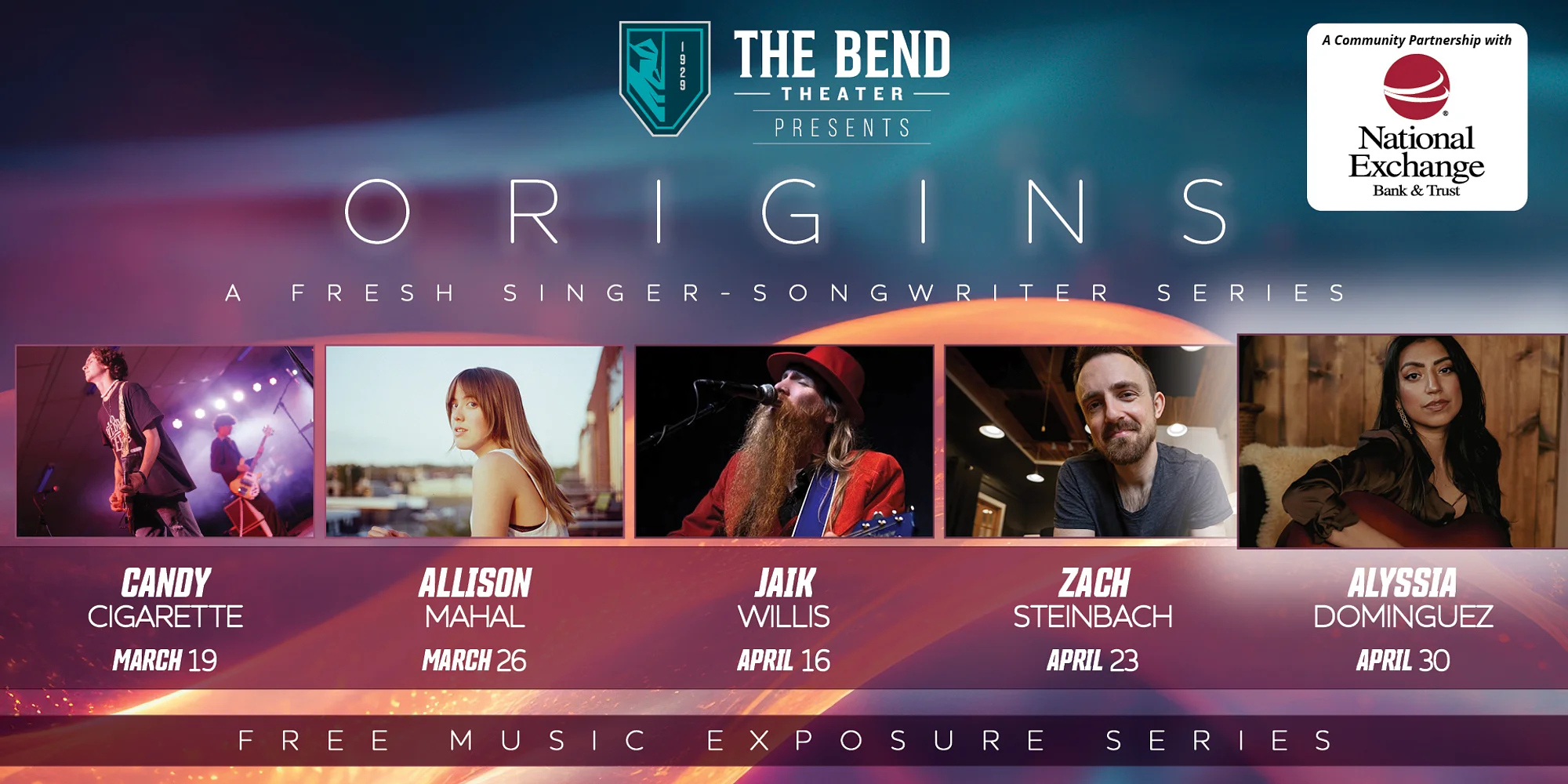 ORIGINS – A Fresh Singer-Songwriter Series March 19th through April 30th – 7pm No ticket required! Simply come in and enjoy! A Community Partnership with National Exchange Bank & Trust April 30 – Alyssia Dominguez Weaving her Mexican American roots into modern country music, singer-songwriter Alyssia Dominguez spins a new twist on the genre. Dominguez, born and raised in Wisconsin, draws inspiration from her grandmother’s musicality from her days in a local Tejano band. The vivid memory continues to fuel Dominguez’s lifelong passion. Donning a “cowboy couture” look of her own, Dominguez was featured in the Washington Post profile of Mexican fashion designer Manuel Cuevas, highlighting his career pioneering the iconic look for artists like Elvis and Johnny Cash. She appeared alongside other notable Hispanic artists in Nashville. Your host for the night is our very own Joe Polizzi! FREE Event! No ticket required! Show begins at 7pm. Doors open at 6:30pm! Hundreds of FREE parking spots and great restaurants lining Main Street and surrounding area! We’ll see you soon!