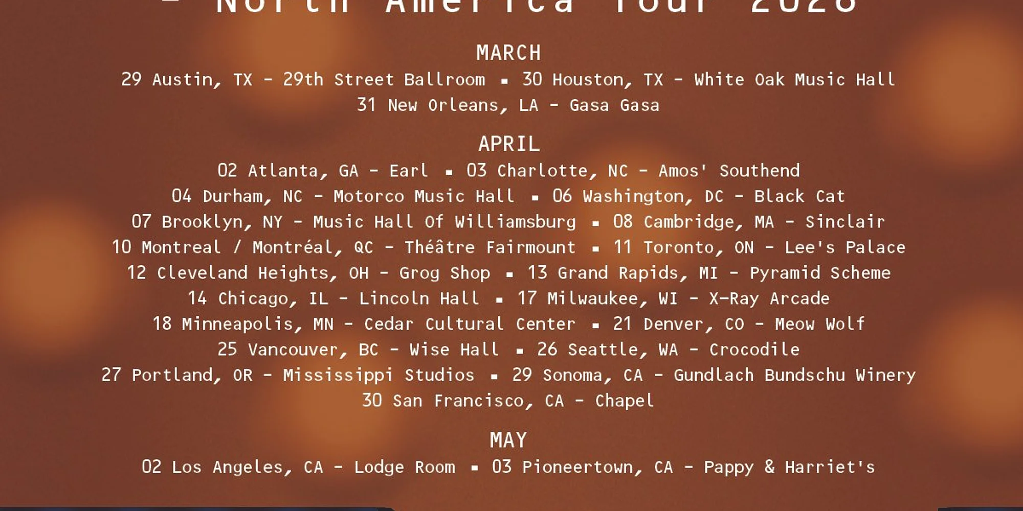 The Cedar Presents THE WEDDING PRESENT with Mark Robinson sings "Unrest" Saturday, April 18, 2026 / Doors: 7:00 PM / Show: 8:00 PM All Ages Standing $30 Advance, $35 Day of Show Buy Tickets *For Cedar Presented shows, a $4 facility fee is included in the ticket price (Ticket fee info here). This is a standing show with an open floor. To request seating or other access accommodations, please go to our Access Page. For Cedar presented shows, online ticket sales typically end one hour before the door time, and then, based on availability, tickets will be available at the door. Tickets purchased at the door will include a $1 Eventbrite fee. LISTEN ABOUT THIS SHOW The Cedar welcomes English indie rockers The Wedding Present for the first time, performing their Steve Albini-produced album Seamonsters in its entirety. The Wedding Present The Wedding Present have had eighteen UK Top 40 hit singles… not bad for a band that has, from its inception, stubbornly refused to play the record industry’s game. It all started in 1985 when David Lewis Gedge boarded a National Express coach in London with 500 records packed into a pair of his mother’s suitcases and, in this fashion, delivered the band’s debut single Go Out And Get ‘Em, Boy! to a distribution company in Yorkshire. That pioneering spirit has been at the core of the band’s philosophy ever since. From George Best, “an unmitigated delight” , the first full-length release on their own Reception Records onwards, the band has charted an appealing, if often eccentric, course of its very own. With their early releases The Wedding Present had acquired a reputation for bittersweet, breathtakingly honest love songs immersed in whirlwind guitars, so it was extraordinary that Ukrainski Vistupi V Johna Peela, with the band exploring traditional Eastern European folk music, should be their major label debut for RCA Records. “(They) carry off what is basically a bold experiment with verve” . However, this was soon followed by the more traditionally incendiary Bizarro, “simply unbeatable” which featured their first hit single Kennedy. To learn more about The Wedding Present: Visit their Instagram page here Mark Robinson Mark Robinson is an indie-rock musician from Washington, D.C. who founded Teen-Beat in 1984. Best known for founding Unrest (with Phil Krauth and Tim Moran), he has also been a member of Air Miami, Flin Flon, Grenadine, and currently plays with Evelyn Hurley (Blast Off Country Style) in Cotton Candy and also with D. Trevor Kampmann as Fang Wizard. He has released a number of solo records. His recordings are typically sparse, often based around a carefully controlled guitar. To learn more about Mark Robinson: Visit his Instagram page here SPONSORED BY