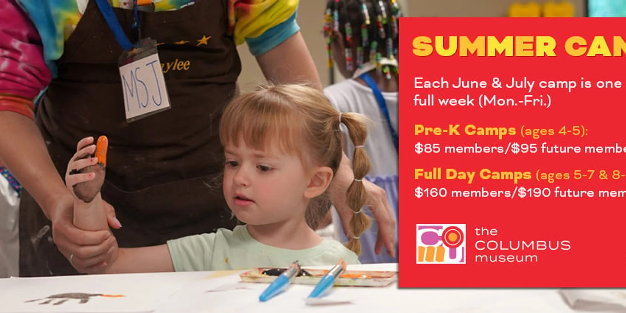 Campers solve art mysteries in the galleries using observation, drawing, painting, and collage. Our summer camps offer a fun, creative environment where campers can explore art through engaging studio lessons, hands-on art making, and daily gallery walks throughout the Museum. Each week concludes with a special exhibition celebrating every camper’s artwork – an experience families and friends won’t want to miss. To help ensure a positive experience for all campers, please note: Campers must meet the minimum age requirement on or before the first day of their registered camp session. Pre-K campers must be fully toilet-trained and able to use the bathroom independently. Full-day campers should bring a lunch and a snack each day; Pre-K campers only need to bring a snack.