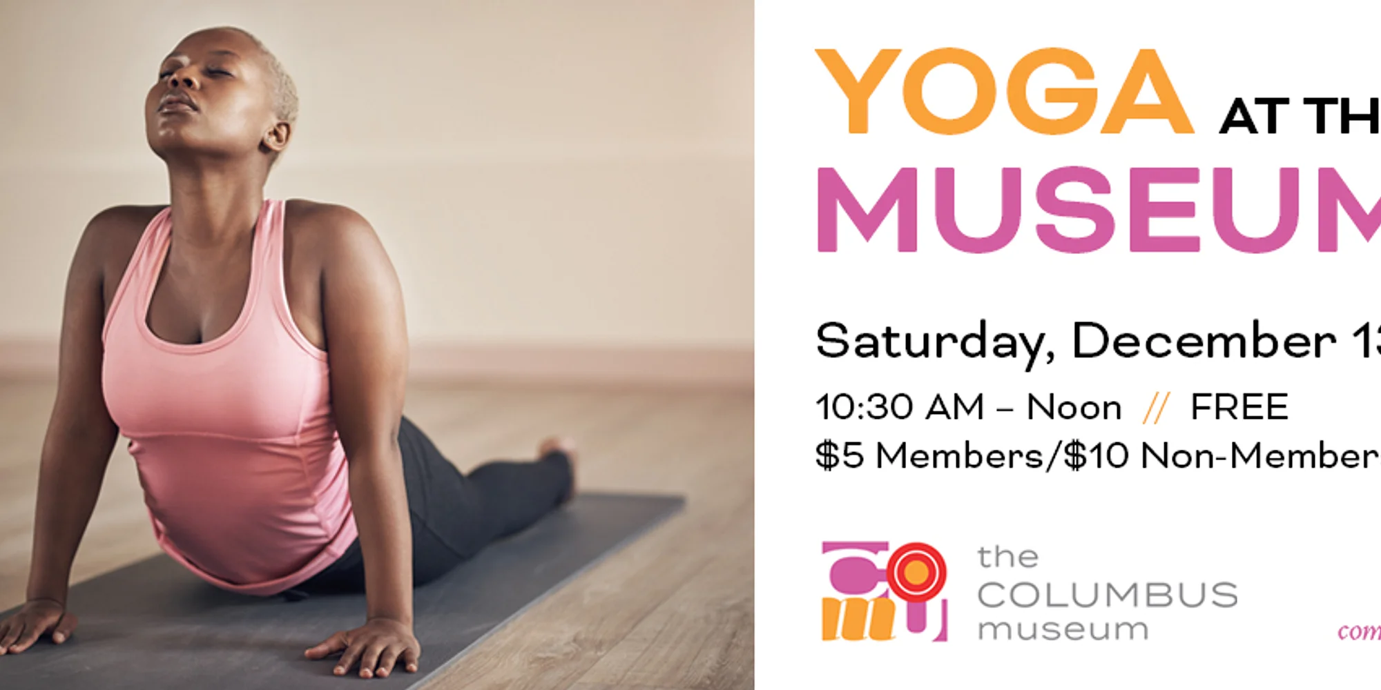 Relax and enjoy The Columbus Museum with a special yoga class! Start with a short mindfulness exercise then relax with a gentle, all-levels yoga session led by Sue Tomkiewicz. Some yoga mats are available on a first-come, first-served basis. Registration is required.