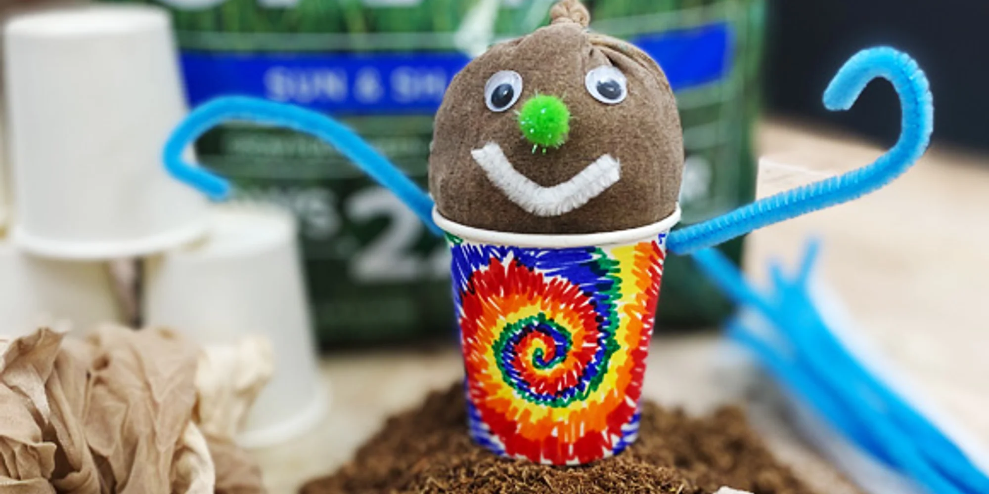 Create a character that will grow with the spring flowers in The Shop. Using soil, grass seed, and a variety of other materials, you can create a character that, when nurtured carefully, will grow a healthy crop of grass hair! Please note: The Shop offers access to real tools and materials that can cause injury if used improperly. Parents are encouraged to help young tinkerers use the tools and materials safely in this space.