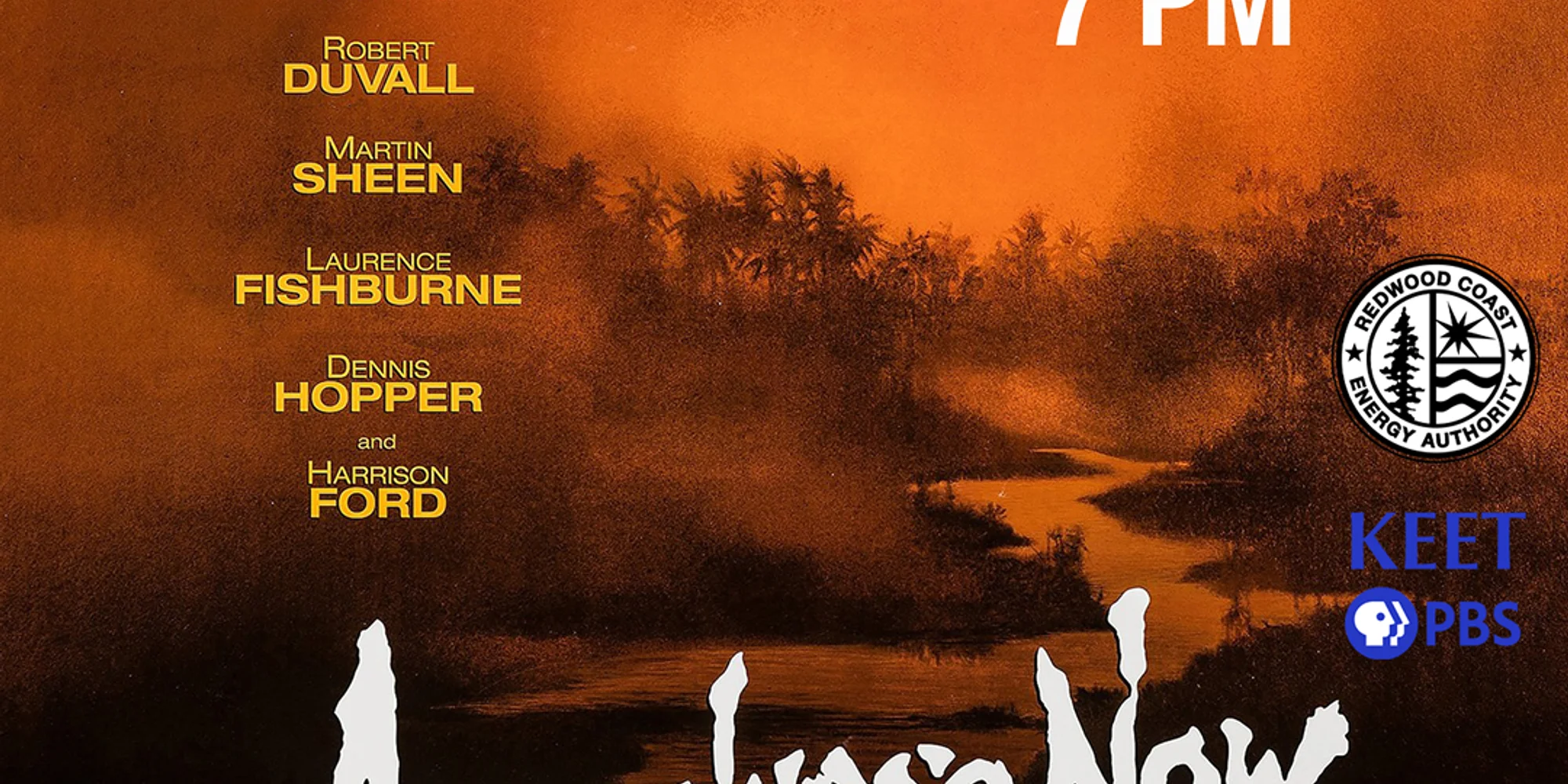 A toast to the great Robert Duvall. Join us on Saturday, May 23rd at the historic Eureka Theater for a special edition of our Essential Cinema series. We are honoring the passing of the great Robert Duvall with a big screen presentation of Francis Ford Coppola’s hallucinatory masterpiece, Apocalypse Now Redux. This is your chance to see Duvall deliver one of cinema’s most legendary performances as Lieutenant Colonel Bill Kilgore, a surf-obsessed cavalry commander who rides into battle to the sound of Wagner. He is terrifying. He is hilarious. He is utterly unforgettable. And yes, he loves the smell of napalm in the morning. Surrounding him is a cast for the ages: Marlon Brando, Martin Sheen, Robert Duvall, and a young Laurence Fishburne. The Redux version adds nearly 50 minutes of lost footage, including the infamous French plantation sequence. It is longer, stranger, and deeper. It demands to be seen on the biggest screen possible. Part of our Essential Cinema series. Because some films are not just movies. They are experiences that demand a crowd, a dark theater, and on a big screen in Humboldt County. Event Details Doors Open at 7:00 PM Film Starts at 7:30 PM Tickets General Admission: $10 Not recommended for children under 12 About the Film During the Vietnam War, Captain Willard (Martin Sheen) receives a mission that will break him. His orders are to travel upriver into the Cambodian jungle and terminate Colonel Kurtz (Marlon Brando), a once-brilliant officer who has gone completely mad and now rules over a remote outpost as a god. Along the way, Willard encounters surfing colonels, Playboy bunnies, tiger attacks, and the absolute limit of human darkness. Apocalypse Now is not a war film. It is a descent into hell. Do not get out of the boat. Grab your tickets now for a night of “I love the smell of napalm in the morning” at the Eureka Theater. Even in the heart of darkness, you need good power, a great magazine, and public television. Thank you to Redwood Coast Energy Authority, North Coast Journal and KEET TV.