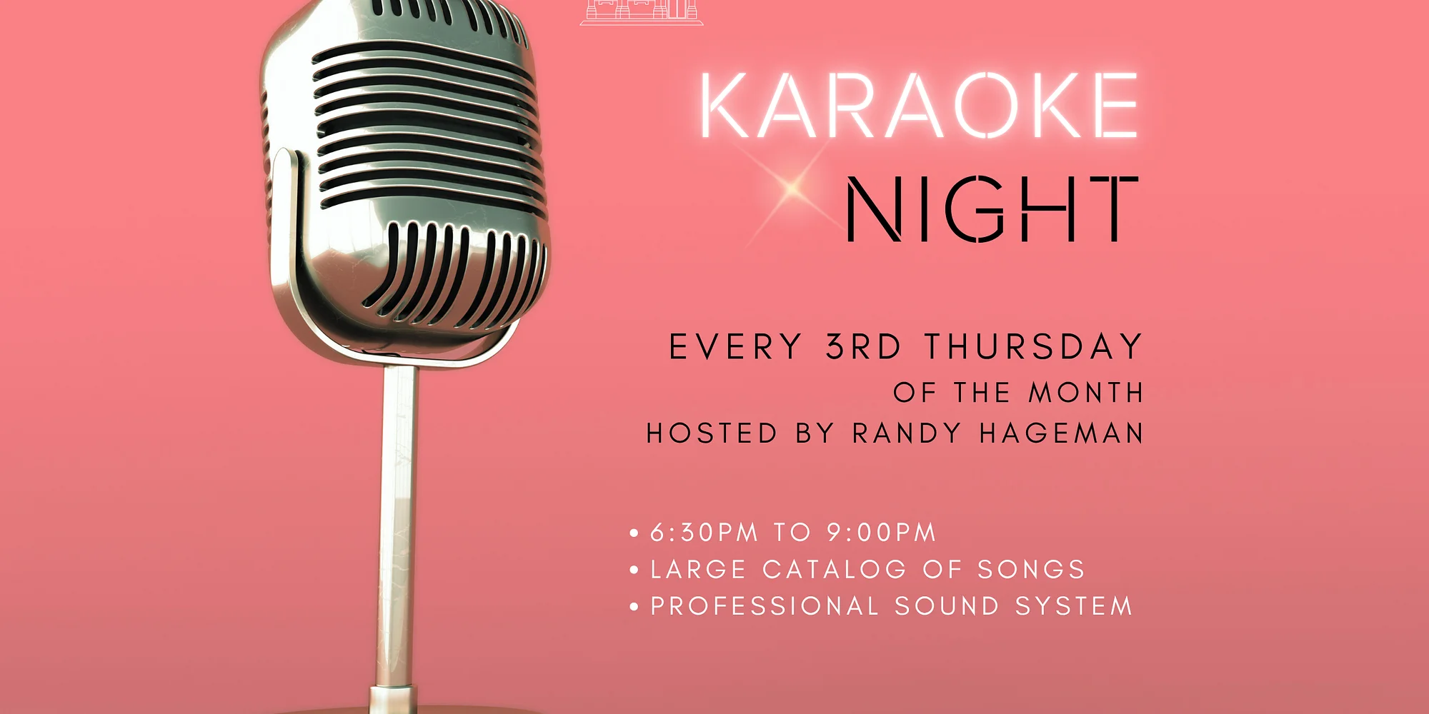 Every 3rd Thursday of the month! Large selection of songs. Hosted by Randy Hageman. Professional sound equipment.