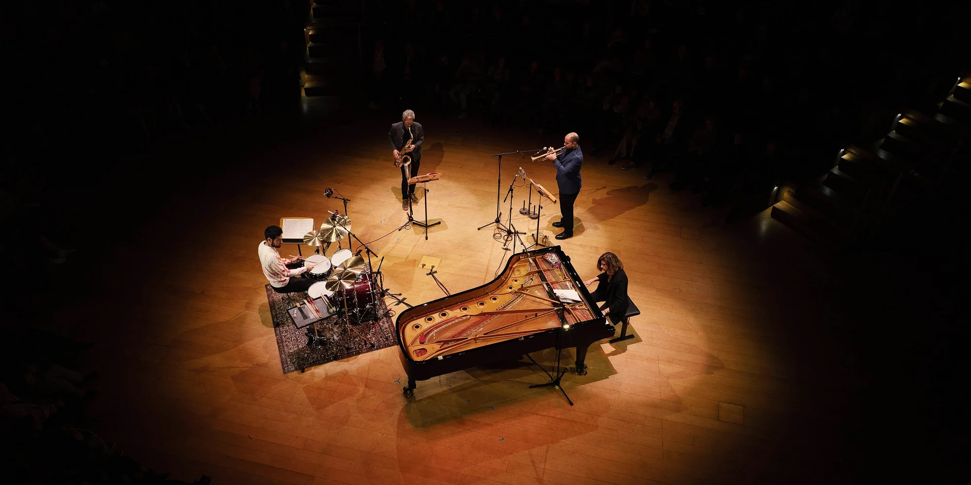 Amir ElSaffar - trumpet & vocal Tomas Fujiwara - drums Tania Giannouli - microtonal piano Ole Mathisen - tenor saxophone Amir ElSaffar New Quartet documents the initial encounter between trumpeter Amir ElSaffar's trio, consisting of Tomas Fujiwara, one of NYC's most in-demand and dynamic drummers, and Ole Mathisen, a tenor saxophonist of unparalleled technique and versatility, with Greek pianist Tania Giannouli, a rising star who has headlined almost every major jazz festival and venue in Europe over the past several years. ElSaffar’s nuanced and vibrant trumpet sound, rooted in Chicago school classical technique, combining subtle ornamentation and microtones of Arab Maqam with Jazz influences ranging from Miles to Woody Shaw, resonates throughout the session, guiding the new ensemble into unexplored musical territories. The music ranges from intensely quiet and nearly silent to ecstatic and declamatory, with the microtonal piano ringing ear-opening and beautifully unconventional harmonies throughout. "an elegiac tone with ElSaffar's emotionally strident peals nudged into unfamiliar territory...with the piano's bell-like chimes in a complex microtonal web." –The Wire 7pm Set 9pm Set LIVESTREAM TICKETS COMING SOON! Livestream 7pm Livestream 9pm AMIR ELSAFFAR Amir ElSaffar is an Iraqi-American composer, trumpeter, santur player, vocalist, and modular synthesist working at the intersections of jazz, Western classical, and Maqam music of Iraq and the Middle East. He has been described as a “celebrated trumpeter and composer who explores vital connections between jazz and Arabic music” (New York Times) and is best known for his pioneering work combining jazz and Maqam, mainly through his Two Rivers sextet and 17-piece Rivers of Sound Orchestra. As a jazz trumpeter, he has performed in the ensembles of Cecil Taylor, Archie Shepp, Anthony Davis, Danilo Perez, William Parker, and Vijay Iyer, among others. He is also a renowned Iraqi santur player fluent in the millennia old and nearly extinct Iraqi Maqam, and is musical director of the last living vocalist of the genre, Hamid Al-Saadi. As a composer and musical director, ElSaffar has created works for symphony orchestras, string quartets, chamber ensembles, jazz ensembles, Middle Eastern music ensembles, as well as hybrid projects with Raga, Flamenco, and Sub-Saharan African trance music. His works have been commissioned and performed in major festivals and venues around the world. He is now working on an Arabic-language Maqam opera. In 2024, he founded Maqam Studio, a performance and workshop space in Brooklyn, NY, and a record label, Maqam Records, with a mission of preserving and fostering the development of Iraqi Maqam and related practices. SPONSORSHIP The Jazz Gallery is a not-for-profit arts organization presenting emerging artists who challenge convention, take creative risks, and lead their field as performers, composers and thinkers. We provide a platform for artists to ...