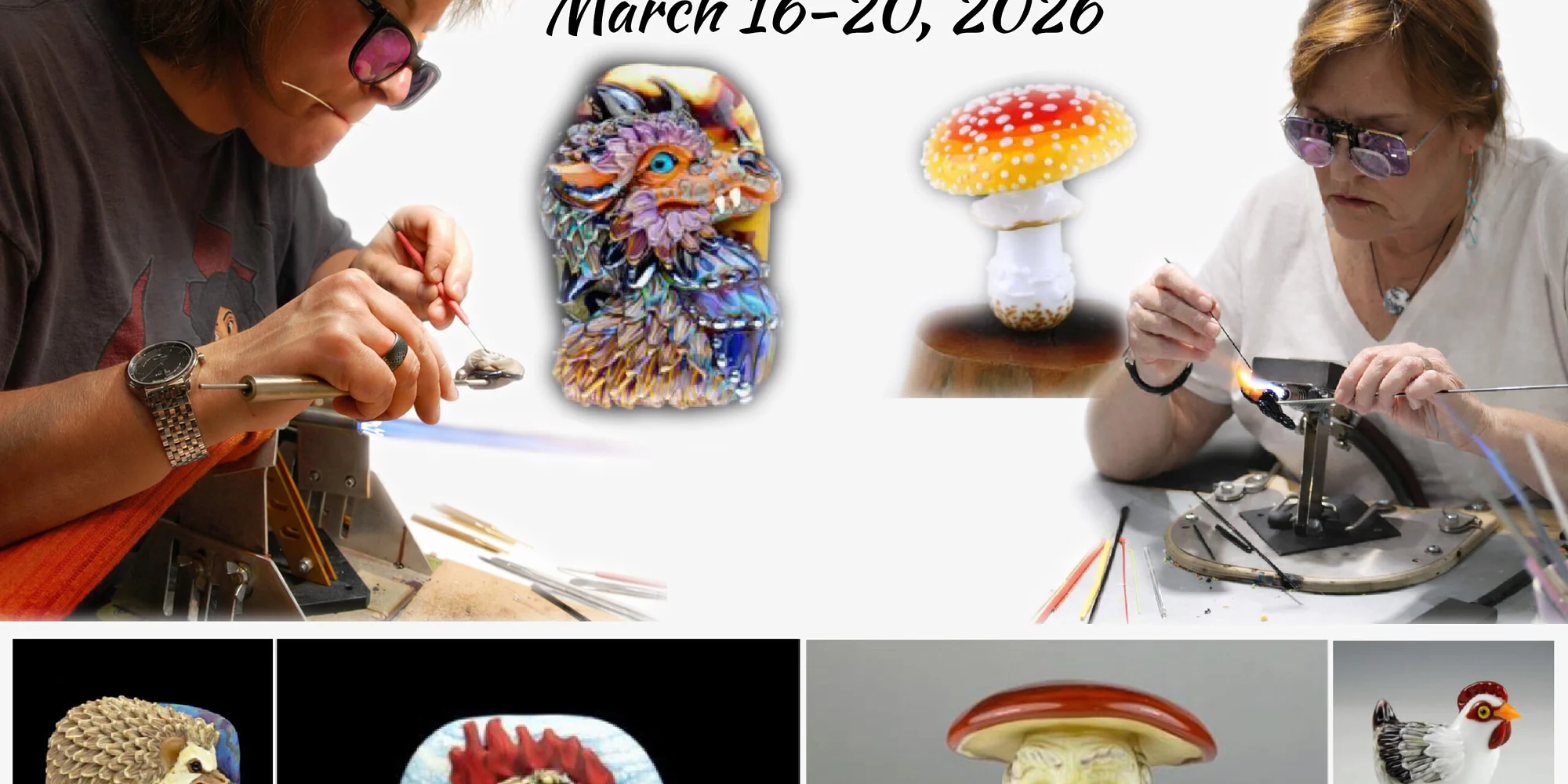 Joy Munshower & Kim Fields ~ March 2026 This workshop will teach you how to make and apply encased cane to create fun textures and effects 5 day flameworking sculpture class (intermediate level) 1 day of cane making 2 days with Joy Munshower 2 days with Kim Fields Techniques include: 3D on-mandrel and bas-relief (low relief) sculpting; complex cane assembly including color mixing and overlays; heat control; cane, stringer, and dot application