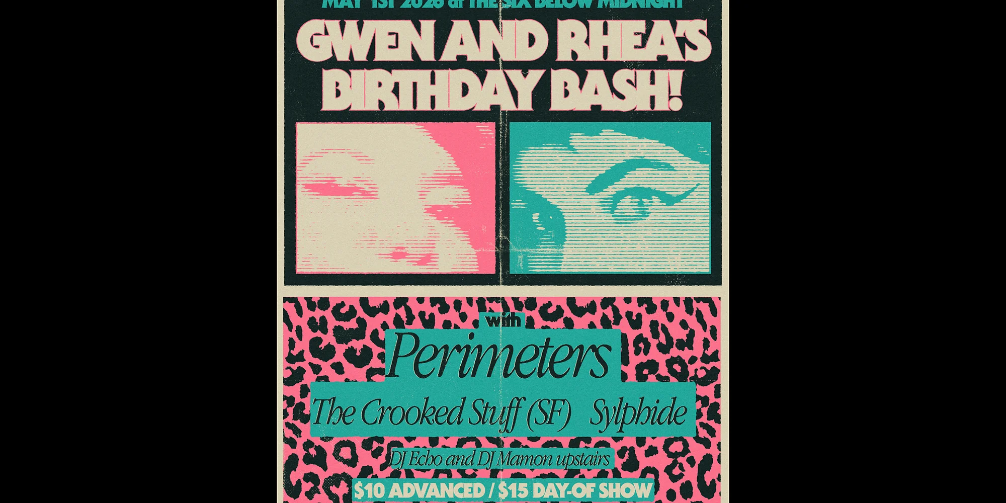 Perimeters, Crooked Stuff, Sylphide + DJ Mamon & DJ Echo celebrate Gwen & Rhea bday bash. Darkwave, discofunk, post-punk all night Perimeters - are a Portland three-piece post-punk/darkwave band featuring Colette on vocals, Chris on synths, and Lan on bass. Their sound sits between early post-punk minimalism and darkwave atmospheres, with stripped-down arrangements and stark vocals that cut through with atmosphere and bite. The Crooked Stuff - A psychedelic discopunk x electrofunk soul experience arises! The Crooked Stuff transmits body-moving music that’s been cross-pollinated from the modern electronic and classic analog worlds. Having shared the stage with Tank & The Bangas, Fishbone, The Nth Power, Lyrics Born, Dumpstaphunk, Monophonics and other funk, rock and electronic fortified crews… The Crooked Stuff is honed and on the rise into deeper space. Sylphide - Ethereal synthesizers, pulsing bass and 808 beats that will make you dance with the fae 🧚💀🧚💀🧚💀🧚 ON DECKS: DJ Mamon - Portland mainstay. Original member of Pastilla, drummer for Sun Atoms, Rayon, The Verner Pantons, Brady, and a resident DJ at The Six. DJ Echo - Portland based Dj spinning Goth, Post Punk, Darkwave, Industrial, EBM, New Wave, and New Romantic vinyl. Member of Club Deluxe and Onlyonly. Poster art by Tobias Berblinger 21+ DOORS 8:30pm MUSIC 9pm GET TIX HERE: https://bit.ly/PerimetersCrookedSylphideAtTheSix