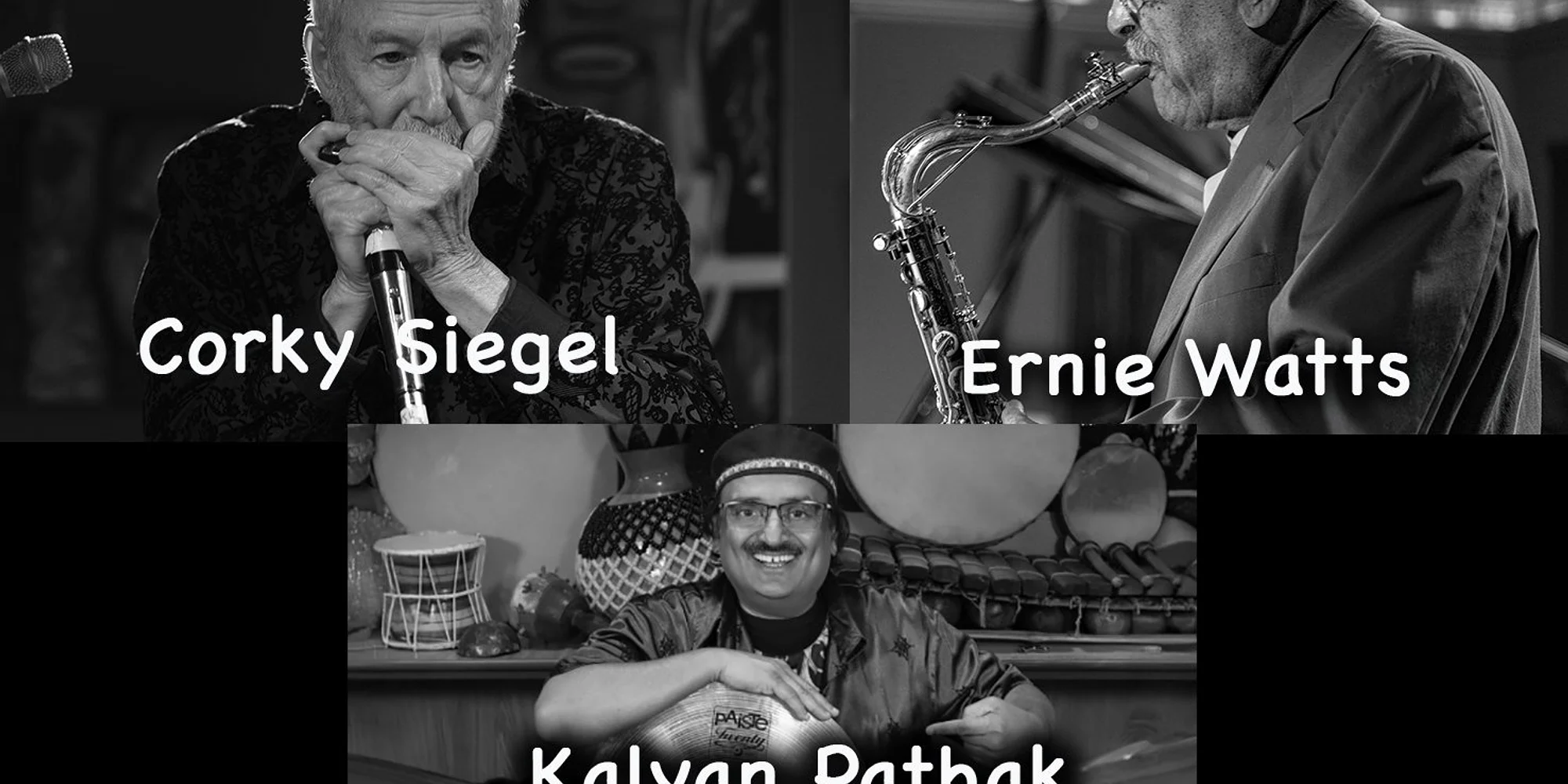 TICKET LINK | https://www.eventbrite.com/e/corky-siegel-ernie-watts-kaylan-pathak-tickets-1965404843795?aff=oddtdtcreator https://www.dropbox.com/scl/fi/4qbznf0nedmami1tbzqum/Ernie-Corky-Kalyan-AD-9-16.mov?rlkey=q5aijrmy35s1kd73bp43j9iah&e=1&dl=0 Jazz, Blues & Indian Music Masters - Corky Siegel, Ernie Watts & Kalyan Pathak Sagacious songs and instrumentals by Corky Siegel, the trail blazing legend of Siegel-Schwall, Symphonic Blues and Chamber Blues is joined at the very hip by the Grand Wazoo himself, Ernie Watts (from the Rolling Stones to Frank Zappa), 2x Grammy winning iconic jazz saxophonist. CORKY SIEGEL: "A piano and harmonica virtuoso of remarkable invention and wit." BILLBOARD MAGAZINE. ERNIE WATTS: "He breathes fire, can cool with ice, whip up a storm, and shape his sax sound in ways otherworldly. This is a powerful, yet sensitive, technically Herculean, yet human, complex yet elegantly beautiful player - no, a marvel."- ALL ABOUT JAZZ Corky Siegel is known as one of the world’s great blues harmonica and keyboard players. Corky has a pivotal influence in modern music. He has close associations with the blues masters in the earlier days of Chicago blues through his Siegel-Schwall Band. Furthermore, he has achieved a surprising level of success in bringing together blues and classical audiences. For all these reasons Downbeat Magazine calls him a “national treasure.” Ernie Watts is a two-time Grammy winning saxophonist. Watts played in the Tonight Show band with Doc Severinsen for Johnny Carson for twenty years. He toured with the Rolling Stones, Charlie Haden, Buddy Rich and Pat Metheny. He has recorded with Marvin Gaye, Dizzy Gillespie, Paul McCartney, Aretha Franklin, Steely Dan, Frank Zappa and others. Watts has been featured on over 1500 recordings, always exhibiting his unforgettable gift for improvisation. Jazz icon Ernie Watts and blues harmonica ace Corky Siegel first met in Mumbai. They were each invited by the distinguished violin virtuoso, Dr. L. Subramaniam to perform in his Global Fusion project. They have been best friends from the moment they met. Further, they continue to collaborate in celebrated performances and on acclaimed recording projects. The evening will be a display of musical fireworks from these iconic masters, filled with remarkable stories and humor. In Corky’s words: “Innocent victims of incredible good fortune." In Ernie's words; "We will change the makeup of your chromosomes.” But wait! Dynamic Indian tabla crackerjack, Kalyan Pathak will be joining in on the musical adventure. "Fleet finger virtuosity" - CHICAGO TRIBUNE - Howard Reich. Recently played all the symphonic percussion instruments as well as being a prominent tabla solo feature on Corky Siegel's Symphonic Blues No. 6 composition and recording. "A masterpiece of stunning proportions." GOLDMINE (Mike Greenblatt)