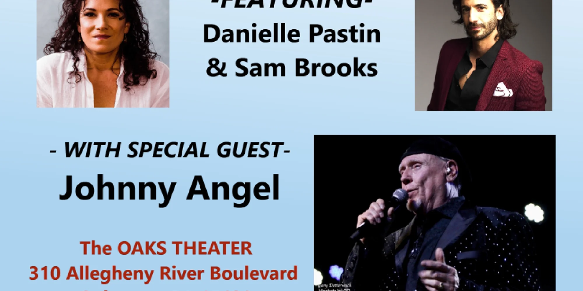 Doors 6:30 PM / Show 7:30 PM $23-25 Theater Seating $30 Bar Seating $128 Table Seating for 4 The Pittsburgh Doo-Wop Big Band Relive the sounds of the 50s, 60’s and 70’s with the “Legendary” Pittsburgh Doo Wop Big Band! Under the direction of Dr. John Pastin, (a thirty-year veteran of the Navy’s Music Program who has conducted, commanded, trained and performed with some ofhe Navy’s most prestigious bands) this 19 member group of professional musicians brings you your favorite “hits” from the 50's, 60‘s and 70's. Featuring the sensational vocal accompaniment of SAM BROOKS (with an M.M. from New York University and a B.M. from Berklee College of Music Sam is a local favorite appearing Musical Theater & Film Productions) and DANIELLE PASTIN (praised by Opera News as having “one of the most sheerly beautiful voices on the scene today,” soprano Danielle Pastin continues to earn critical acclaim for her engagements across the country). The band is very excited to welcome our guest artist Pittsburgh’s own JOHNNY ANGEL who brings his “Blue-Eyed Northern Soul” sound to the stage backed by this powerful band! A favorite of the Steel City, Johnny’s been packing theaters around the country for decades! Get your tickets before they sell out! buy tickets