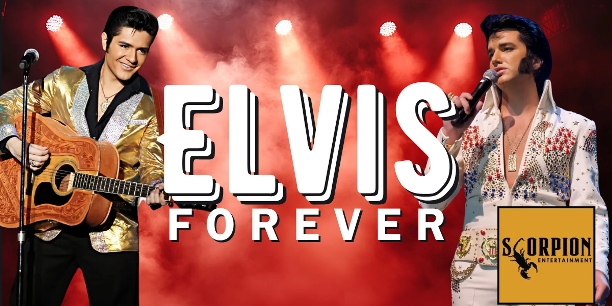 FEATURING THE ROCKING HORSE MEDICINE SHOW Step into the spotlight and relive the magic of the King of Rock 'n' Roll with 'Elvis Forever', an electrifying tribute show featuring not one, but two world-class Elvis tribute artists (Jimmy Holmes, Moses Snow)! This dynamic production celebrates the full spectrum of Elvis Presley's legendary career, from the hip-shaking rebel of the 1950s to the glitzy Vegas showman of the 1970s. TICKETS