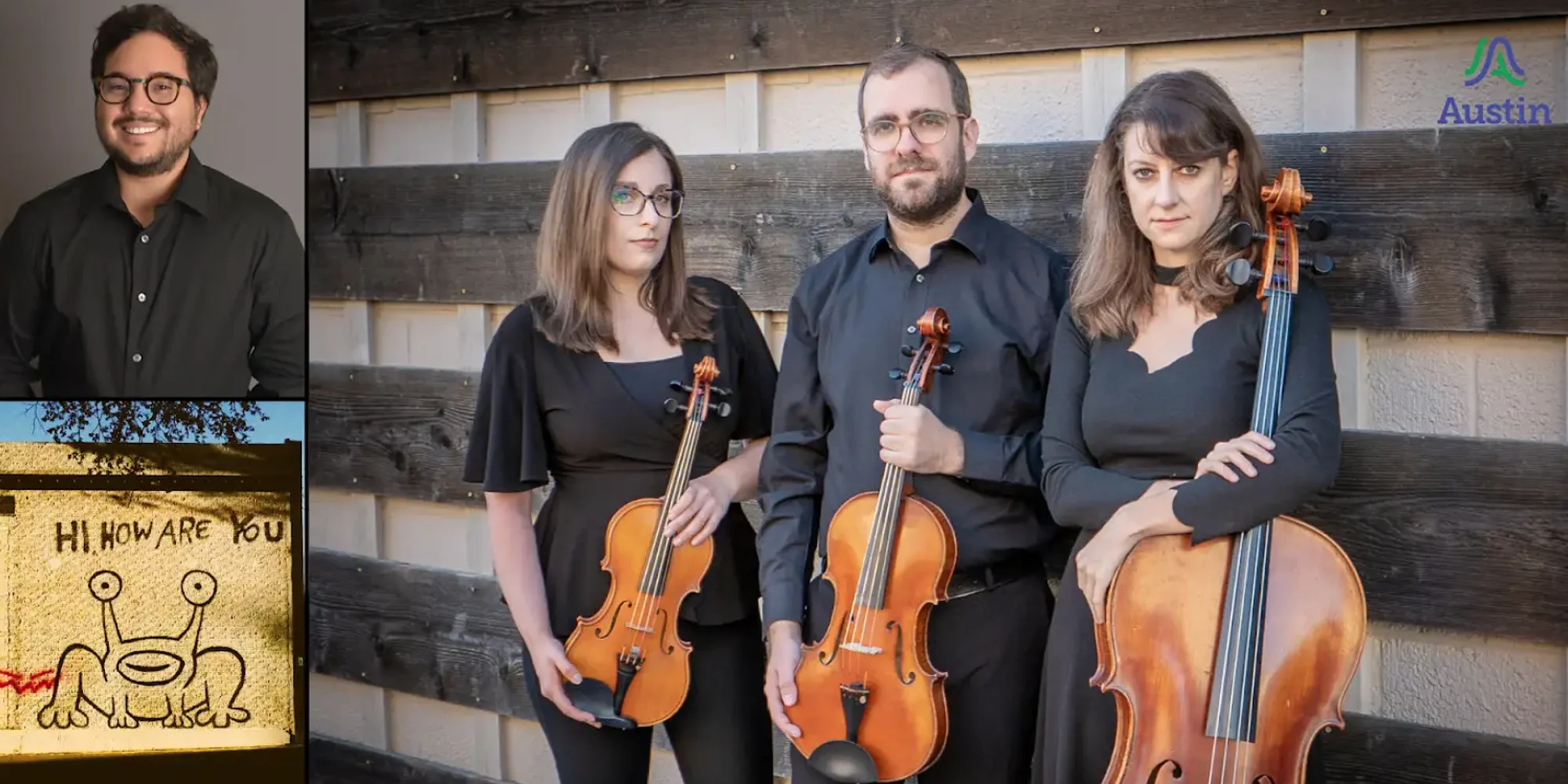 How Are You, 512? Doors 7pm, show 7:30pm-9:00pm Join Amorsima Trio for an evening of adventurous new music, featuring the world premiere of How Are You? for string trio, video, and electronics by Austin-based composer Stephan Arce-Penedo. This multimedia work pays homage to Austin throughout the 20th and 21st centuries, combining historic video footage and audio interspersed with sounds of the string trio. The program also includes Alan Mackwell’s Remains of a Permian Gas Station (a sonic portrait of an abandoned gas station in West Texas), Missy Mazzoli’s Lies You Can Believe In (a work based on “urban folk music”), and more music by Mario Lavista, Giovanni Sollima, Ermir Bejo, and Andrea Casarrubios. This project is supported in part by the City of Austin Office of Arts, Culture, Music and Entertainment. Amorsima Trio is a boundary-pushing ensemble that redefines the traditional expectations of a string trio, bringing a fresh and contemporary perspective to the stage. Comprised of violinist Mia Detwiler, violist Mike Capone, and cellist Kourtney Newton, the trio was founded in 2016 through a shared passion for new music. With an unwavering commitment to expanding the string trio repertoire, the Amorsima Trio regularly commissions new works and seeks out collaborations with innovative composers. The name "Amorsima,” which means "that which does not come from fate," was inspired by the Xenakis work Morsima-Amorsima and symbolizes their pursuit to redefine the traditional expectations of the string trio. Stephan Arce-Penedo (b. 1992) is a composer, audio engineer, and educator based in Austin, TX. A Panamanian immigrant, he blends his cultural heritage with classical training and contemporary influences to create expressive, experimental, and personal work. He holds a Master of Music from Texas State University and a BA in Radio, TV, and Film from the University of North Texas. His music—featured in dance, short films, and live performances —has been presented throughout Texas. Stephan’s work explores identity, belonging, and the struggles of modern life, drawing inspiration from everyday experiences and human connection.