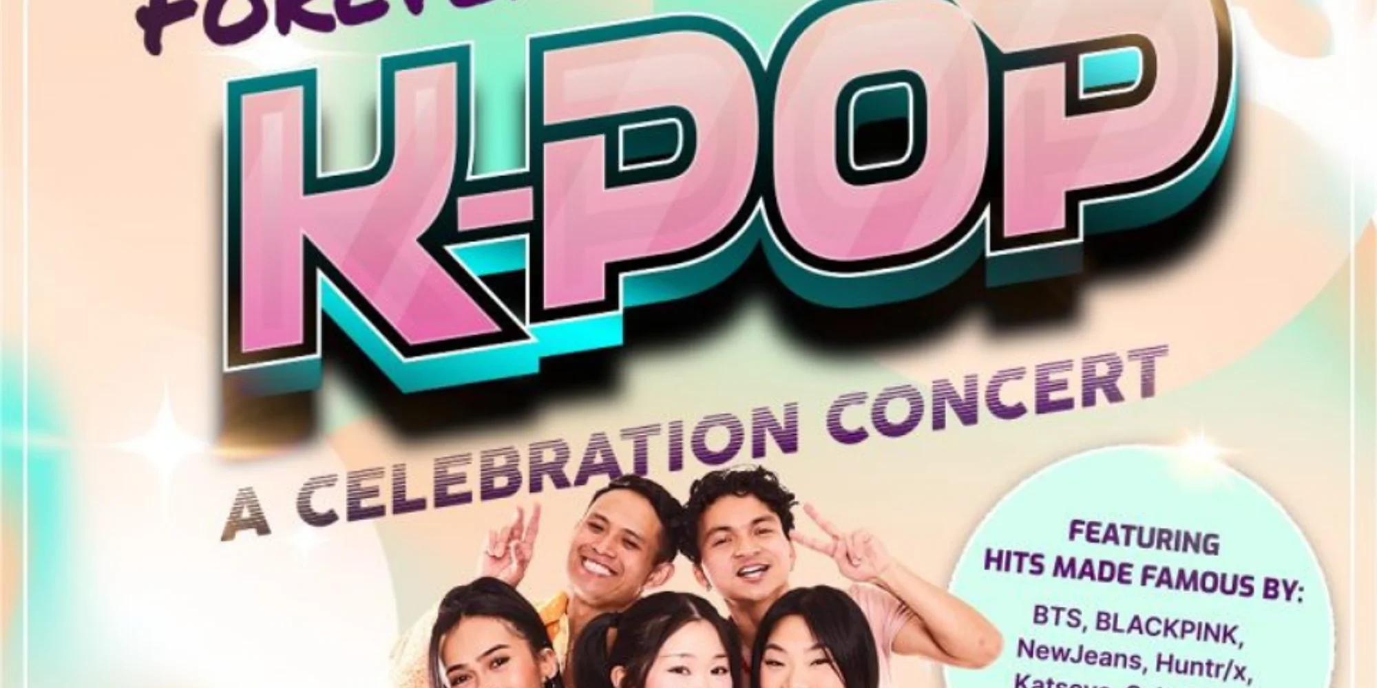 Inspired by the worldwide K-Pop phenomenon and recent smash-hit film KPop Demon Hunters, Forever K-Pop – A Celebration Concert comes to the GLAZER HALL stage! This next-level, fan-powered tribute experience and high-octane production brings today’s biggest K-Pop hits to life on stage in a cinematic spectacle unlike anything audiences have seen in a tribute concert before. Designed as a high-energy K-pop revue, Forever K-Pop – A Celebration Concert fuses electrifying vocals and choreography, bold costuming, and cinematic visuals into a dazzling live performance. Presented in two exhilarating 45-minute acts, the show captures the pulse of the global K-pop movement while spotlighting iconic moments and breakout anthems including electrifying live singers and dancers performing songs made famous by BTS, BLACKPINK, Katseye, HUNTR/x, Saja Boys, NewJeans, and more. Whether you’re discovering K-pop for the first time, a teen who lives for dance practice videos and fancams, or a superfan who knows every lyric, Forever K-Pop promises a euphoric, dance-powered night you won’t forget. Experience it live, loud, and up close! Superfan Package Add-On Includes: Photo Opportunity with the group before the show Limited Edition VIP lightstick w/ sticker pack to customize Collectible VIP Laminate & Lanyard Early Entry into the Venue with Priority Early Merch Shopping PRICE: $125.00 – $225.00