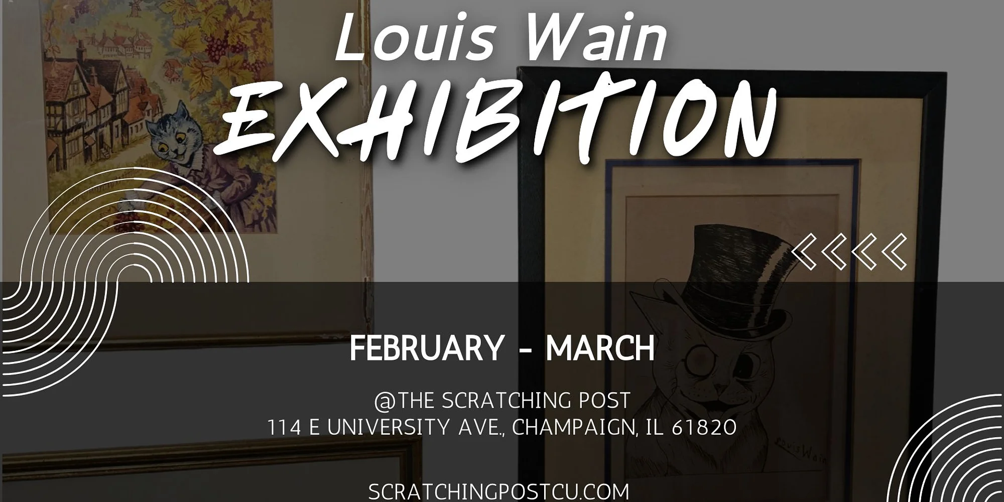 FREE Art Exhibition! Visit The Scratching Post February – March to view a collection of original drawings by the late Louis Wain. Who is Louis Wain? TLDR: Louis Wain was an English artist in the late 1800’s whose work included many drawings of anthropomorphized cats and kittens. More Info: Louis Wain was an English born artist and cat lover extraordinaire. Born August 5th 1860, his birthdate fittingly landed him under the astrological sign of “Leo” which is represented by the second largest type of cat – the Lion! He was the oldest brother to five sisters, his father was a textile trader and his mother a French embroiderer. Historians suggest that around the age of 21, Wain began drawing frequently, with country landscapes and animals being his primary subjects. At around age 23, he became married to Emily Richardson, who was the governess to one of his sisters. At their new home, the married couple enjoyed the company of a cat named Peter, who can likely be thanked for Wain’s affinity of our furry friends. Additionally, reportedly thanks to his wife’s encouragement, Wain became a published artist when The Illustrated London News purchased one of his works in 1884. Unfortunately, not long after being married, Emily became ill with cancer. It is said that Peter the cat provided much comfort for them both during this difficult time. Wain began drawing cats more frequently as a way to amuse Emily, and specifically leaned heavily into his cat illustrations as a way to cope after she eventually passed away from cancer in 1887. Over time, Wain developed a robust portfolio and his work could be found in newspapers, magazines and even children’s books. Wain was highly regarded as a prolific artist, primarily being known for his portrayal of whimsical, anthropomorphic cats doing anything from having tea parties, playing piano or even enjoying a cigar. His deep affection for cats came through with each work of art, aiding him in expertly capturing their alluring and mysterious personalities. By 1890, he was so well known for his obsession with cats that he was even elected president of the International Cat Club… Later in life, demand for Wain’s work diminished greatly, likely due to the cultural shift as World War 1 came to an end. Despite this, his creations continued on and he even expanded into animation and film. Unfortunately, in 1914, Wain suffered a head injury from falling off of an omnibus in London. Later, in 1924, his sisters had him admitted to a psychiatric hospital due to his declining mental health, possibly spurred by the aforementioned head injury. During his stays in psychiatric hospitals, Wain continued to draw and paint our beloved friend, the cat. These later works are usually marked by his use of more vibrant colors, taking on a psychedelic aesthetic. In 1931, a successful exhibition of his art took place in London, of which proceeds went to his sisters. Despite a life marked with significant moments of tragedy, Wain l...