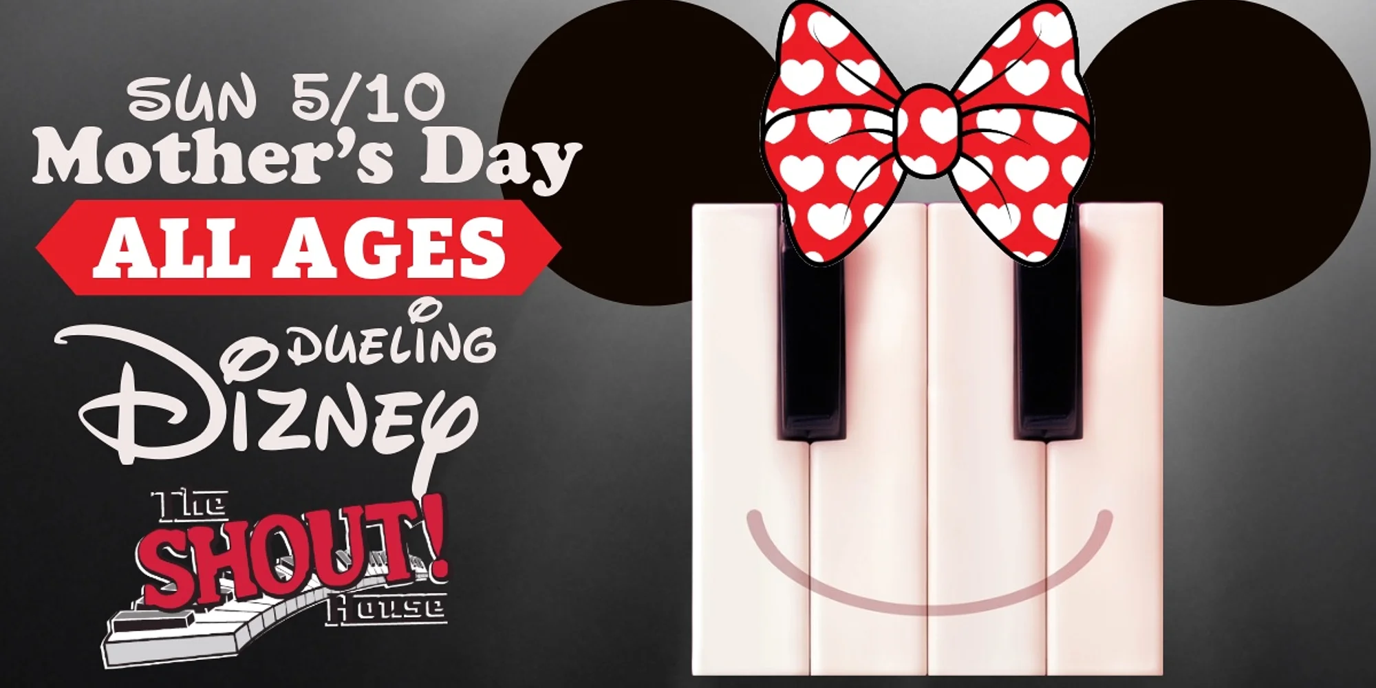 🌸✨ Mother’s Day Magic at The Shout! House – All-Ages Dueling Pianos! ✨🌸 PIANO PLAYERS: TBD Date: Sun, May 10th 🎶 1st Show: Doors at 1:00 PM | Pianos 1:30–3:00 PM 1st Show – TABLE RESERVATIONS 🎶 2nd Show: Doors at 4:00 PM | Pianos 4:30–6:00 PM 2nd Show – TABLE RESERVATIONS Table reservations are recommended, we will sell out fast!! $15/guest reservation fee (Kids in lap, under 2 years old free). This Mother’s Day, treat Mom to a day of music, laughter, and a little magic! 🌟 Join us at The Shout! House for a family friendly Dueling Pianos show, where the whole family can sing along and request your favorite songs. Be our guest as you enjoy a menu featuring our signature dishes and special kid-friendly options – perfect for little princes and princesses! A family that shouts together, stays together! Let’s make this Mother’s Day one she’ll cherish forever at The Shout! House. Walk-ins Welcome!
