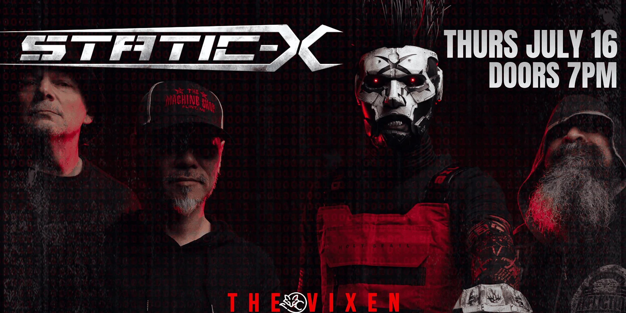 STATIC-X THURSDAY, JULY 16TH DOORS OPEN AT 7PM ALL AGES SHOW TICKETS: VIP Club Pre-Sale – Thurs Jan 22nd @ 10am Public Sale – Fri Jan 23rd @ 10am