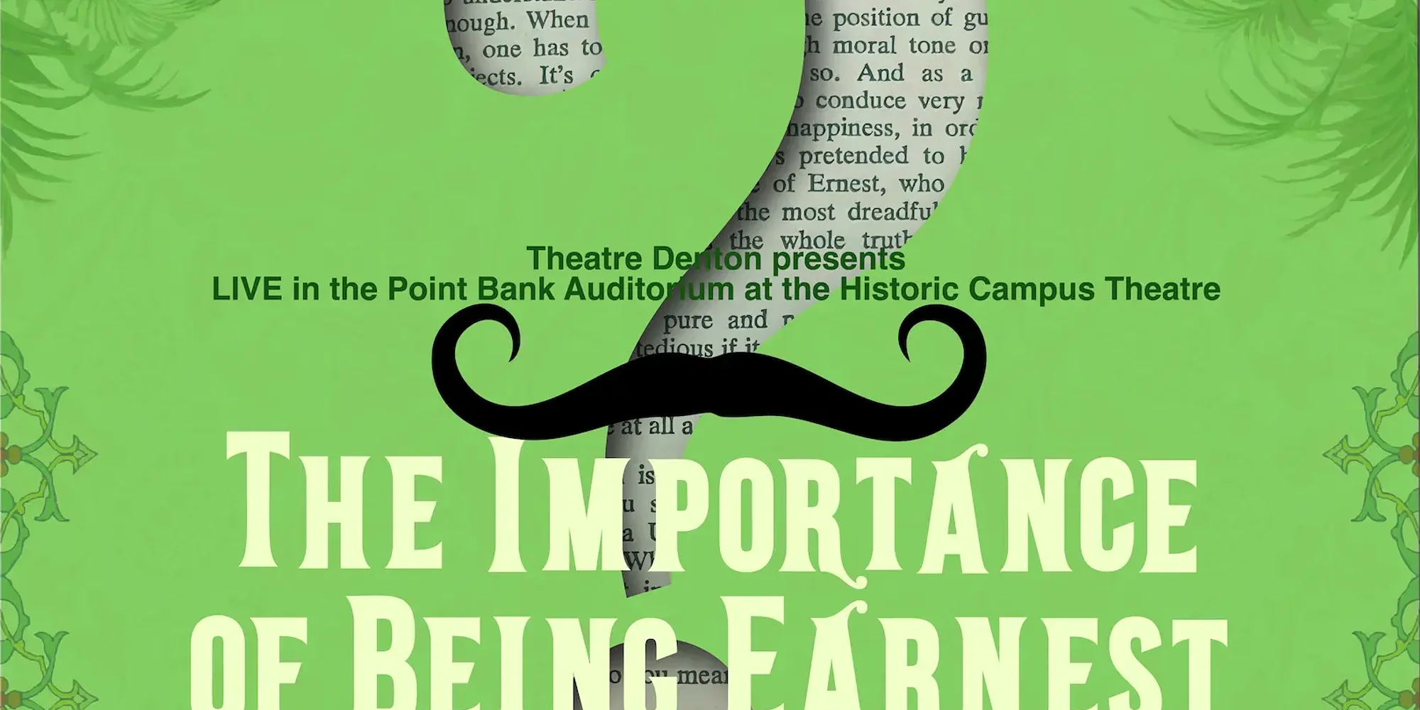 By Oscar Wilde (May 22, 23, 24, 28, 29, 30, 31) Directed by Donna Trammell and Buster Maloney This delightful farce, set in 1895 England, follows two young men who lead double lives to evade unwanted social obligations. To further confuse the situation, they both assume the name Ernest while wooing two young women. Auditions – Mar. 15, 16 Tickets on Sale – Apr. 3, 2026