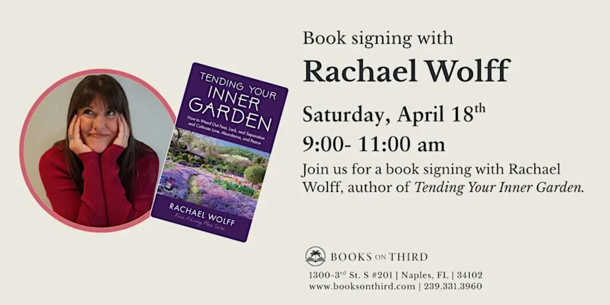 Tending Your Inner Garden by Rachael Wolff is a transformative guide to breaking free from fear-based thinking and the patterns that keep us stuck. Through powerful insights and practical tools, Wolff helps readers identify and “weed out” the toxic influences in their lives—including limiting beliefs, scarcity mindsets, and cycles of blame—and replace them with compassion, gratitude, and connection. This empowering book invites readers to cultivate an inner sanctuary rooted in love, abundance, and peace. With clarity and authenticity, Wolff shows how tending to your inner world can transform the chaos of the outside world into fertile ground for growth. Whether navigating life’s challenges or seeking deeper self-understanding, Tending Your Inner Garden offers a path toward healing, resilience, and lasting change. Rachael Wolff is a Naples-based inner garden certified life coach, EFT practitioner, and Reiki master. With a bachelor’s degree in human development and over 30 years of lived experience navigating trauma-induced PTSD and OCD, she brings both professional expertise and deep personal insight to her work. She has also supported her daughter through significant mental and physical health challenges, further shaping her compassionate and holistic approach. As the creator of the From a Loving Place brand, Rachael guides individuals to discover their own unique path toward healing and growth, encouraging them to live with intention, self-compassion, and empowerment. Join us to meet Rachael in person, have your book signed, and connect over this inspiring guide to healing, growth, and living from a place of love. 📅 Date: Saturday, April 18th 🕘 Time: 9:00–11:00am 🎟 Admission: Free 📍 Location: Books on Third – 1300 3rd St S Unit 201, Naples, FL 34102 Books will be available for purchase and signing at the event.