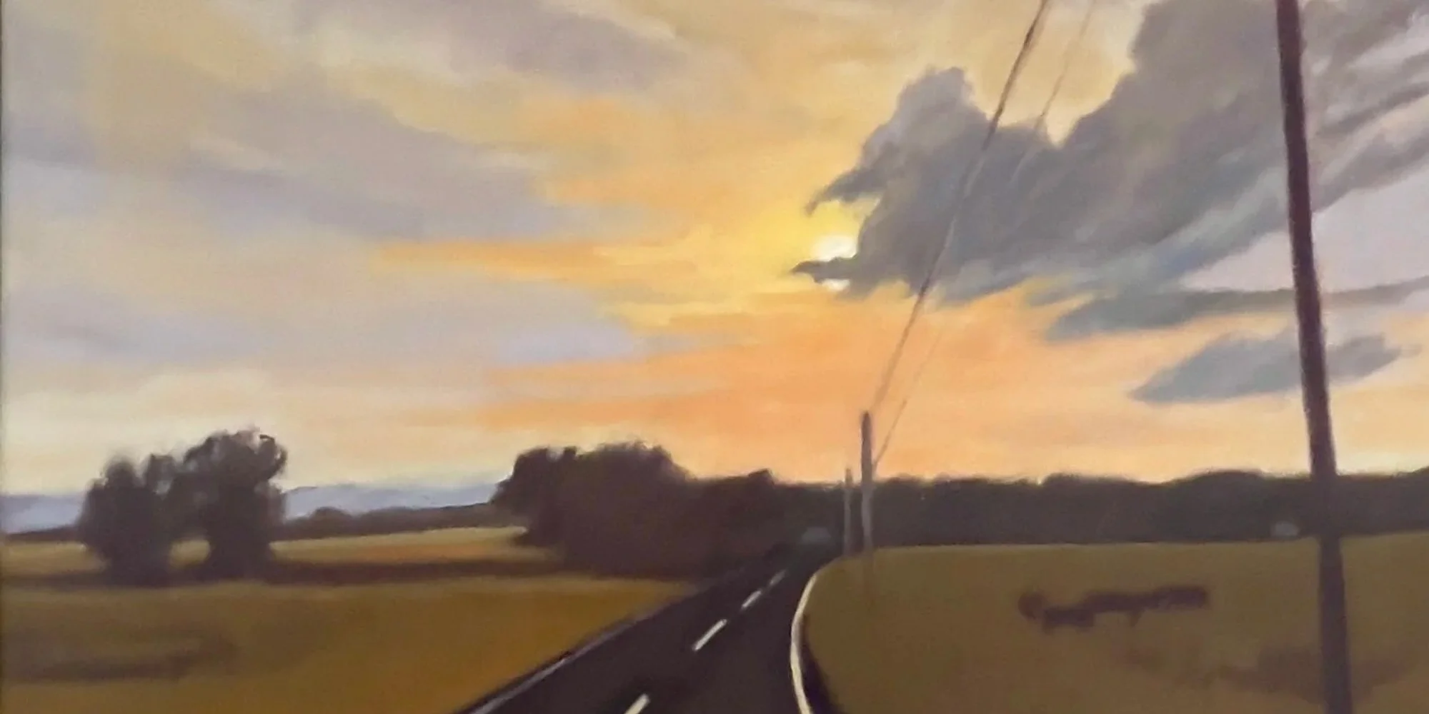 Fall Colors: Seasonal Influences Heading down the Road by Janine Privratsky, oil painting, 16 x 20 in. September 11 - October 11, 2026 Opening reception: Saturday, Sept. 12, 5–7pm Fall Colors is an immersive exhibition that captures the transient beauty of the season through a vibrant collection of paintings and mixed-media works. Utilizing a rich palette of deep ambers, burnt siennas, and fiery crimsons the dramatic shift of nature's landscape before the onset of winter is acknowledged. By blending abstract textures with realistic silhouettes, the show invites viewers to reflect on themes of change, maturity, and the cyclical rhythm of the natural world. Curated by Janine Privratsky