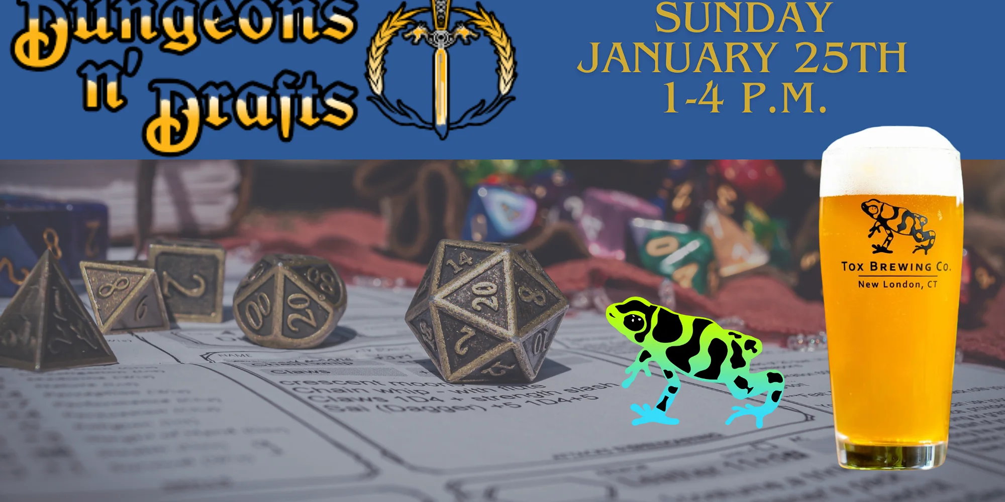 Come play Dungeons & Dragons 5th Edition in the taproom with Dungeons n’ Drafts! No experience/knowledge necessary! All levels welcome. Everything you need to play will be provided (including pre-made character sheets). No need to bring anything, though you're welcome to bring your own dice or whatever other accessories you desire. Games will start promptly at 1 p.m. Reserve your spot here.