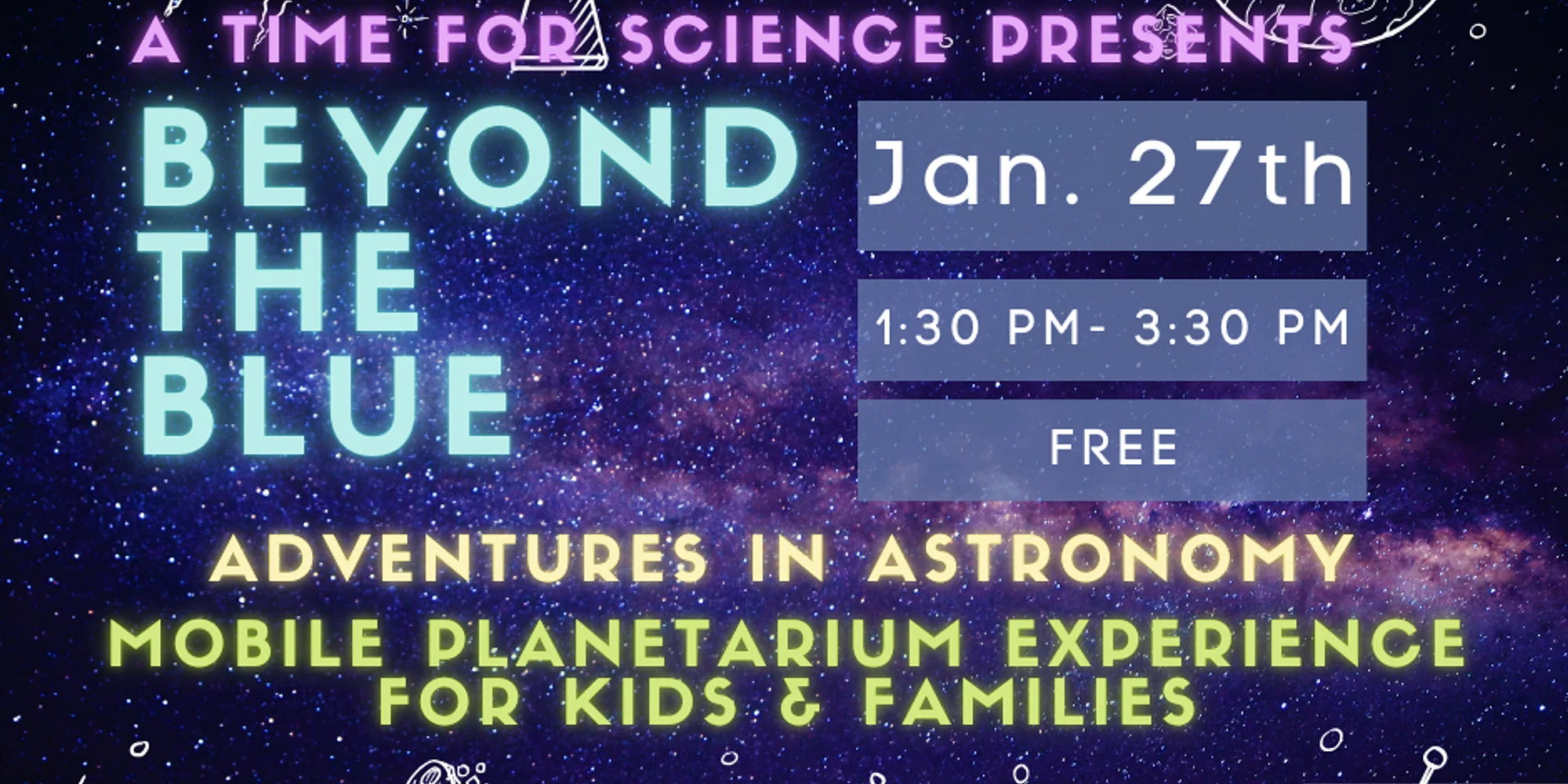 January Program – Trekking Through Space and Time Join us for an exciting, hands-on astronomy experience as part of the Turnage Family Series! On Tuesday, January 27, from 1:30–3:30 PM, families are invited to explore the wonders of space with Beyond the Blue: Adventures in Astronomy, presented by A Time for Science in partnership with the North Carolina Museum of Natural Sciences and supported by Anonymous Trust. This month’s program, “Trekking Through Space and Time,” invites young explorers to delve into the history and invention of telescopes and discover how they help us understand the universe. After the immersive planetarium experience, participants will take part in a hands-on science activity, engineering their very own telescope to take home. The mobile planetarium offers an awe-inspiring, interactive experience that sparks curiosity and imagination, perfect for kids and families, but engaging for all ages. Beyond the Blue is a year-long planetarium series at the Turnage Theatre. Additional free programs will take place on March 13, April 14, June 19, September 8, and November 14, each featuring a different space-themed topic. Individual program details will be shared closer to each date. Event Details 📅 Tuesday, January 27 ⏰ 1:30–3:30 PM 📍 Turnage Theatre 🎟️ FREE admission 👨👩👧👦 Part of the Turnage Family Series Space is limited, so arrive early to ensure your spot. Explore the universe with us!