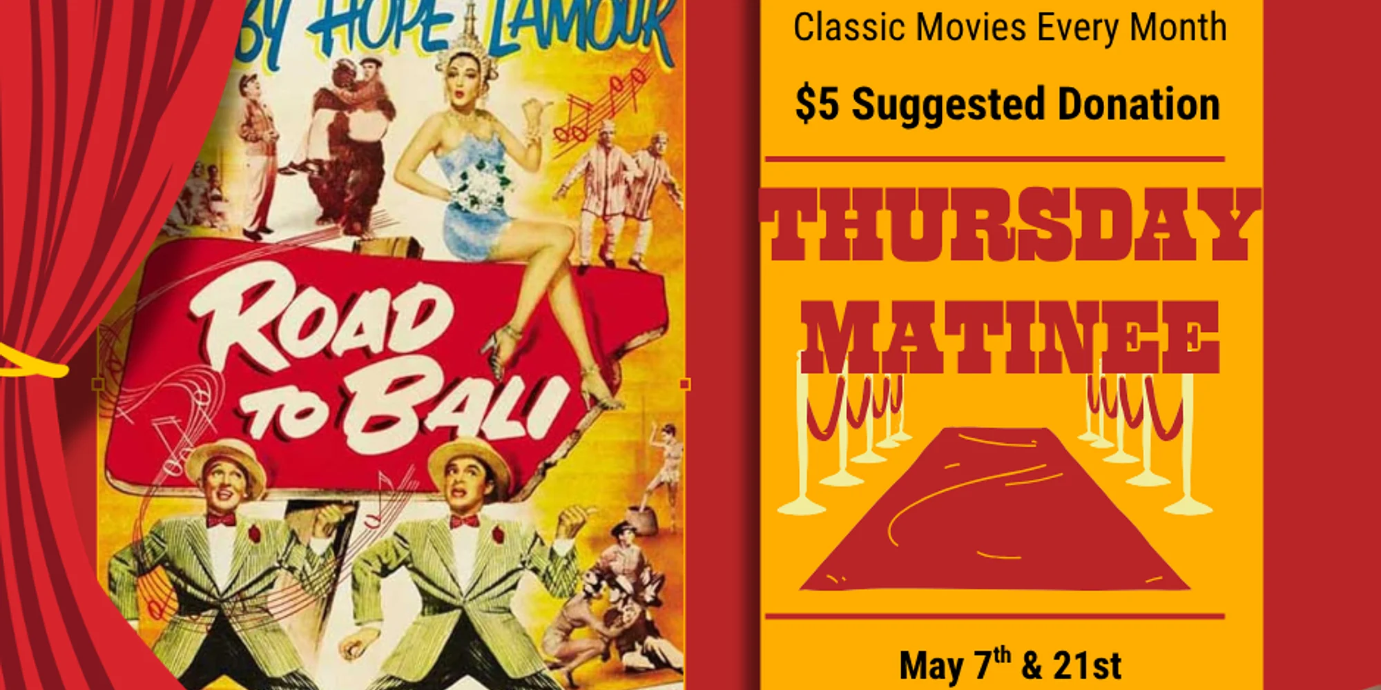 Escape to the Tropics with Bing, Bob, and Dorothy! 🌴🎬 Join us at the historic Turnage Theatre for our May Thursday Matinee series featuring the beloved musical comedy classic, The Road to Bali (1952). The sixth entry in the legendary "Road to..." series, this film stars the iconic trio of Bing Crosby, Bob Hope, and Dorothy Lamour. This time, the boys find themselves as deep-sea divers on the exotic island of Bali, contending with hidden treasure, beautiful princesses, and—of course—plenty of their signature comedic banter and musical numbers. It is also the only film in the series shot in vibrant Technicolor, making it a feast for the eyes on our big screen! Whether you're revisiting a lifelong favorite or discovering this comedic gem for the first time, our Thursday Matinees offer the perfect mid-afternoon getaway into the golden age of cinema. Event Details: When: Thursday, May 7th & Thursday, May 21st, 2026 Time: 3:00 PM (Matinee showing) Where: Arts of the Pamlico at the Turnage Theatre (Main Stage) Cost: $5.00 Suggested Donation Come enjoy the cool theater, fresh popcorn, and a timeless comedy that is sure to brighten your afternoon! ✨
