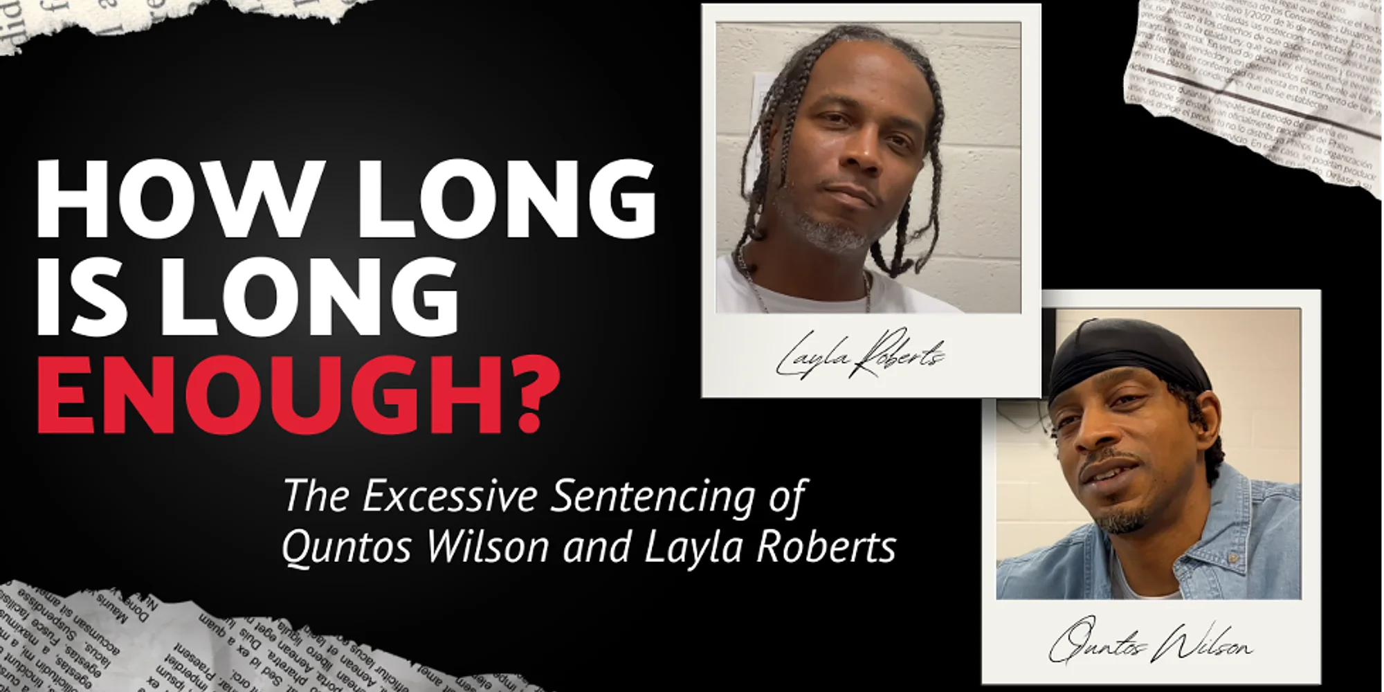 @ Quntos Wilson and Layla Roberts were sentenced to life without parole in 1995 at the ages of 18 and 19 for a robbery in which no one was physically harmed and a mere $301 was stolen. Now approaching 50, they have each become remarkable artists and mentors behind the prison bars of Louisiana State Penitentiary (Angola). Join us for a screening of How Long is Long Enough: The Excessive Sentencing of Quntos & Layla, a short documentary created by Natalie Decena, Sarina Bozorgnia, Veler Brown, and Aiden Olivier from UC Santa Cruz with support from Michael Ademaro from Georgetown Law School as part of the Making an Exoneree initiative. In addition to the documentary screening, the event will include a conversation with Quntos Wilson and Layla Roberts, letter-writing, and collaborative art making. Add to calendar Google Calendar iCalendar Outlook 365 Outlook Live