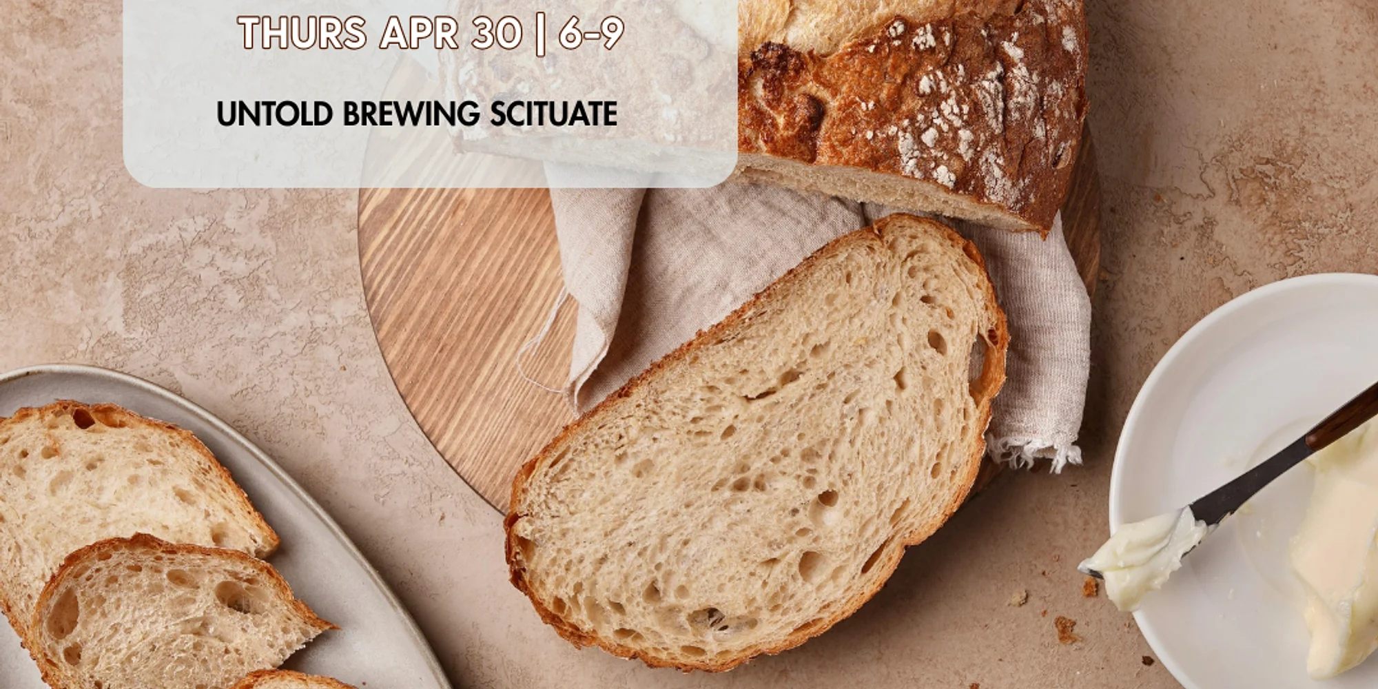When & Where: Date: Thursday April 30th Time: 6-9pm Location: Untold Brewing, Scituate What to Expect: Learn how to craft and bake your own sourdough bread. Participants receive step-by-step instruction through every stage of making a classic loaf of sourdough bread, ensuring a comprehensive and practical learning experience. You will leave with a loaf of bread to bake at home and skills to continue your sourdough journey. Receive hands-on guidance on sourdough breadmaking along with a take-home kit with thoughtfully curated essential tools along with a jar of well-established starter to help you begin your sourdough journey. Plus a beginners manual and a batch of dough to bake at home. During the workshop, you’ll receive an Untold beverage of your choice while you taste loaves of plain and seasonal sourdough! (Additional beverages available for purchase) After class, you’ll also be able to access to a private Facebook community for continued help and motivation after the class is over. A wonderful place to share victories or troubleshoot failures as well as receive exclusive recipes from your teacher! Purchase Tickets Ticket Information: Limited Availability: Only 16 tickets available. Ticket Details: Each ticket includes a complimentary draft pour from Untold Brewing. There are no refunds for this event, unless canceled.