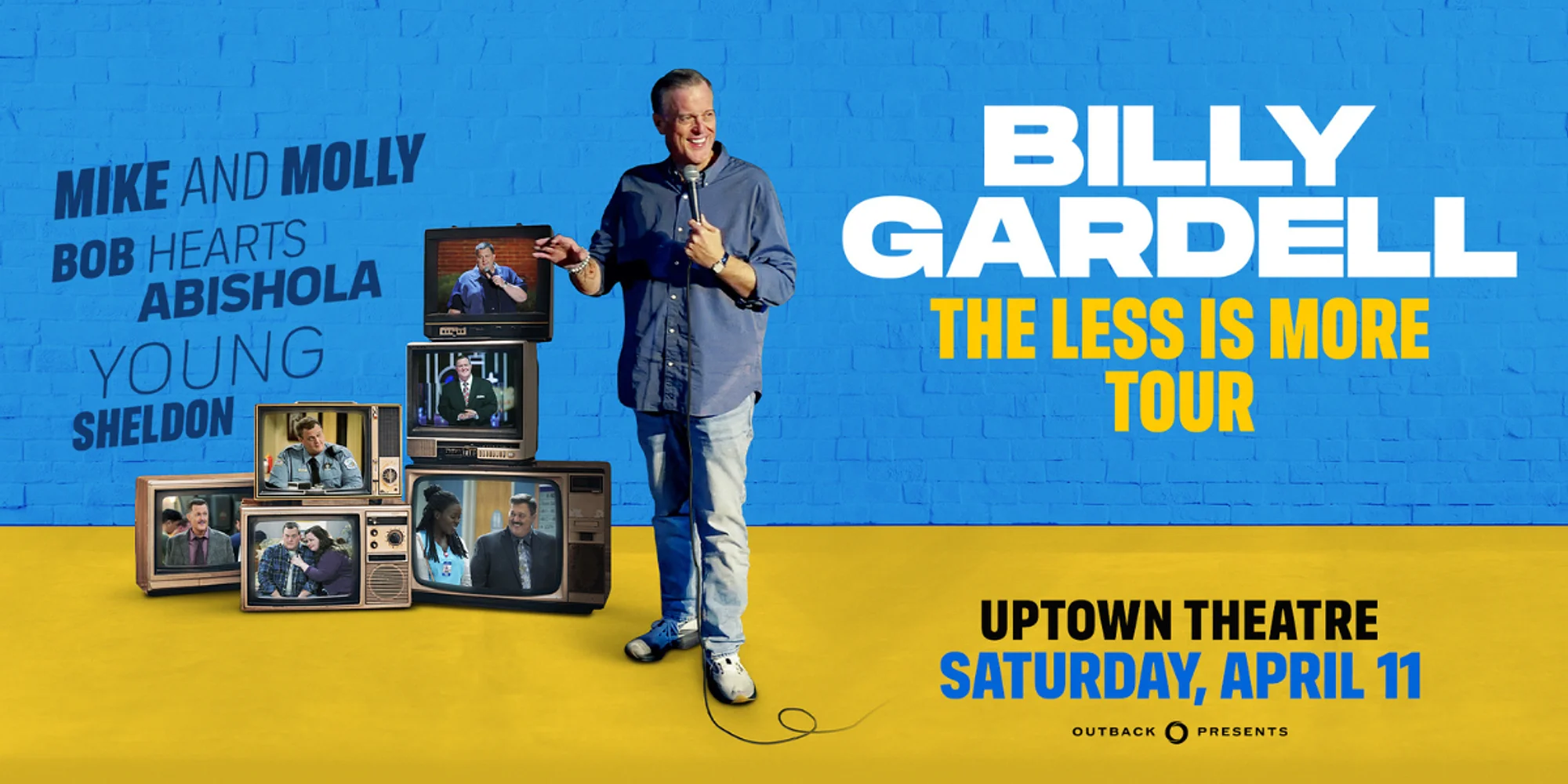 April 11, 2026 PURCHASE TICKETS HERE Doors 6pm/ Show 7pm Ages: 12+ Black Friday Offer! (Happening: November 28 – December 5) Get into the spirit of giving with our exclusive Black Friday Offer — 25% OFF your purchase! Simply use the password GIFT at checkout to unlock your savings. The offer begins November 28 at 12:00 AM (local time) and ends December 5 at 11:59 PM (local time) and is only available while supplies last. Don’t miss your chance to treat yourself — or someone special — to something extraordinary this holiday season! ___________________________________________________________________________________________ Billy Gardell currently stars in the hit CBS series Bob Hearts Abishola, created by award-winning executive producer and writer Chuck Lorre. Bob Hearts Abishola is a heartwarming love story about a middle-aged compression-sock businessman from Detroit who unexpectedly falls for his cardiac nurse, a Nigerian immigrant, while recovering from a heart attack. Undaunted by Abishola’s lack of initial interest—or the vast differences in their backgrounds—Bob is determined to win her heart, in this comedic and insightful look at immigrant life in America. Prior to Bob Hearts Abishola, Gardell starred as Officer Mike Biggs in the CBS hit series Mike & Molly (2010–2016), which continues to air in syndication. He also appeared as Col. Tom Parker in the CMT series Sun Records and held a recurring role on another CBS favorite, Young Sheldon. In 2016, Gardell earned a Daytime Emmy nomination for Best Game Show Host for Monopoly Millionaires Club. Before Mike & Molly, he co-starred in the critically acclaimed series Lucky, and his additional television credits include Yes, Dear, Judging Amy, My Name Is Earl, The Practice, Monk, and Gary the Rat. Gardell made his major motion-picture debut alongside Anthony Quinn and Sylvester Stallone in Avenging Angelo, and shared a memorable scene with Billy Bob Thornton in the Coen Brothers’ Bad Santa. His other film credits include You, Me & Dupree. A veteran of the stand-up circuit, Gardell took the long road to Hollywood, performing in small-town lounges, military bases, and comedy clubs across the country. His grounded, down-to-earth humor resonates deeply with audiences, as he shares stories from his rough childhood, wild adolescence, and family life with the skill of a master craftsman. His comedy specials include: Billy Gardell: Halftime (Comedy Central) Billy Gardell Presents Road Dogs (Showtime) A proud Pittsburgh native now living in Los Angeles, Gardell is a devoted fan of Steelers football, stand-up comedy, and his family—his wife Patty and son Will.