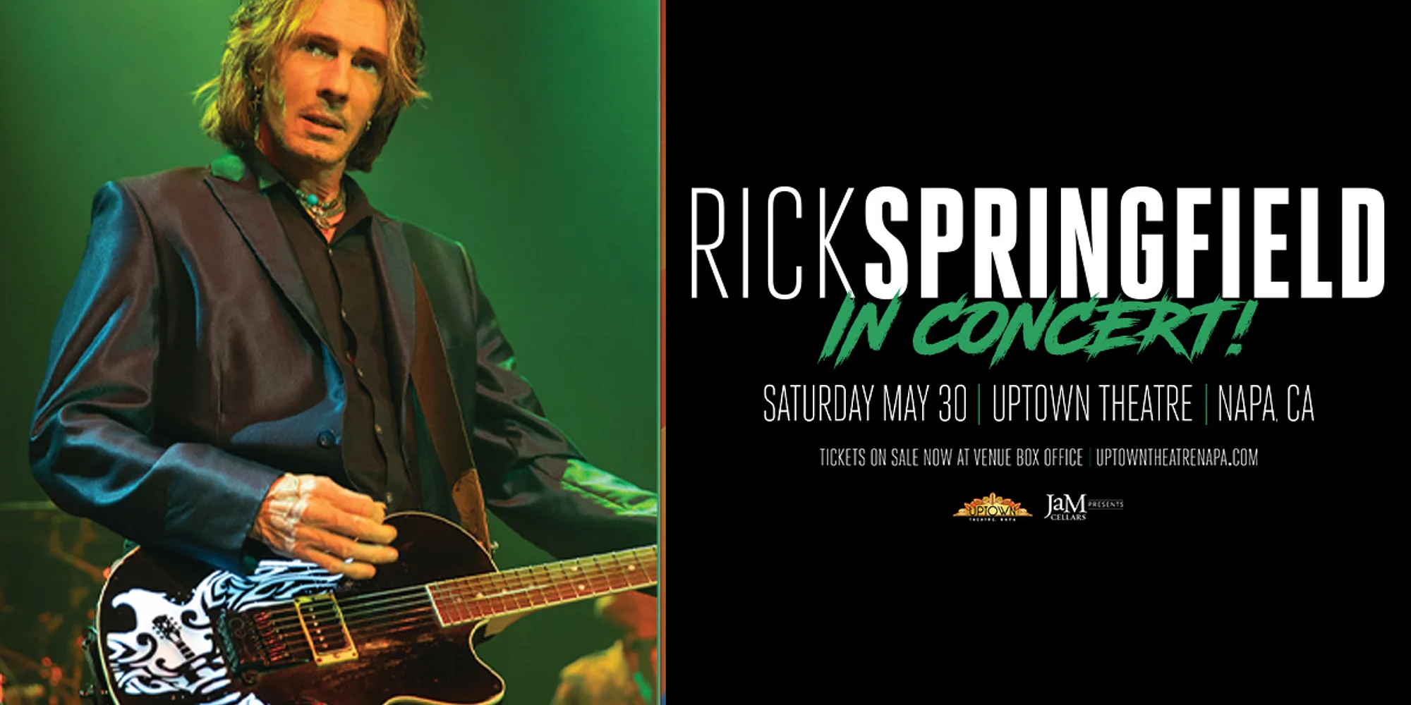 May 30, 2026 Great news! Rick Springfield’s show in Napa, CA at Uptown Theatre has been rescheduled to May 30, 2026. All tickets from the original November 1st show will remain valid. Thank you for your patience and we can’t wait for the show! Tickets are on sale now! ___________________________________________________________________________________________ Doors 7pm/ Show 8pm Ages: 12+ Over the past four decades, Rick Springfield has worn many hats as an entertainer and performer. The creator of some of the finest power-pop of the ’80s, a Grammy winning singer, songwriter, and musician who has sold 25 million albums and scored 17 U.S. Top 40 hits, including “Jessie’s Girl,” “Don’t Talk to Strangers,” “An Affair of the Heart,” “I’ve Done Everything for You,” “Love Somebody,” and “Human Touch.” He’s an accomplished actor who has starred opposite Meryl Streep in the feature film “Ricki and the Flash,” gave a chameleonic performance as the creepy Dr. Irving Pitlor in HBO’s prestige drama “True Detective,” earned great reviews for his portrayal of Lucifer on the CW hit “Supernatural” and most recently played the insane Pastor Charles on FX’s worldwide hit series “American Horror Story.” An author as well, both his candid 2010 memoir Late, Late at Night (which Rolling Stone named one of the 25 greatest rock memoirs of all time) and his 2014 comedic novel Magnificent Vibration earned rave reviews and spots on the New York Times Best Sellers’ list. In 2014, Springfield was honored with a star on the Hollywood Walk of Fame, located around the corner from the first apartment he lived in when he first arrived in the U.S. from Australia in 1971. Springfield’s Sirius-XM radio show, Working Class DJ, is a huge hit and airs weekly on 80s on 8. His new album “Automatic” is out now. Automatic is his first album of all new original material in 5 years.