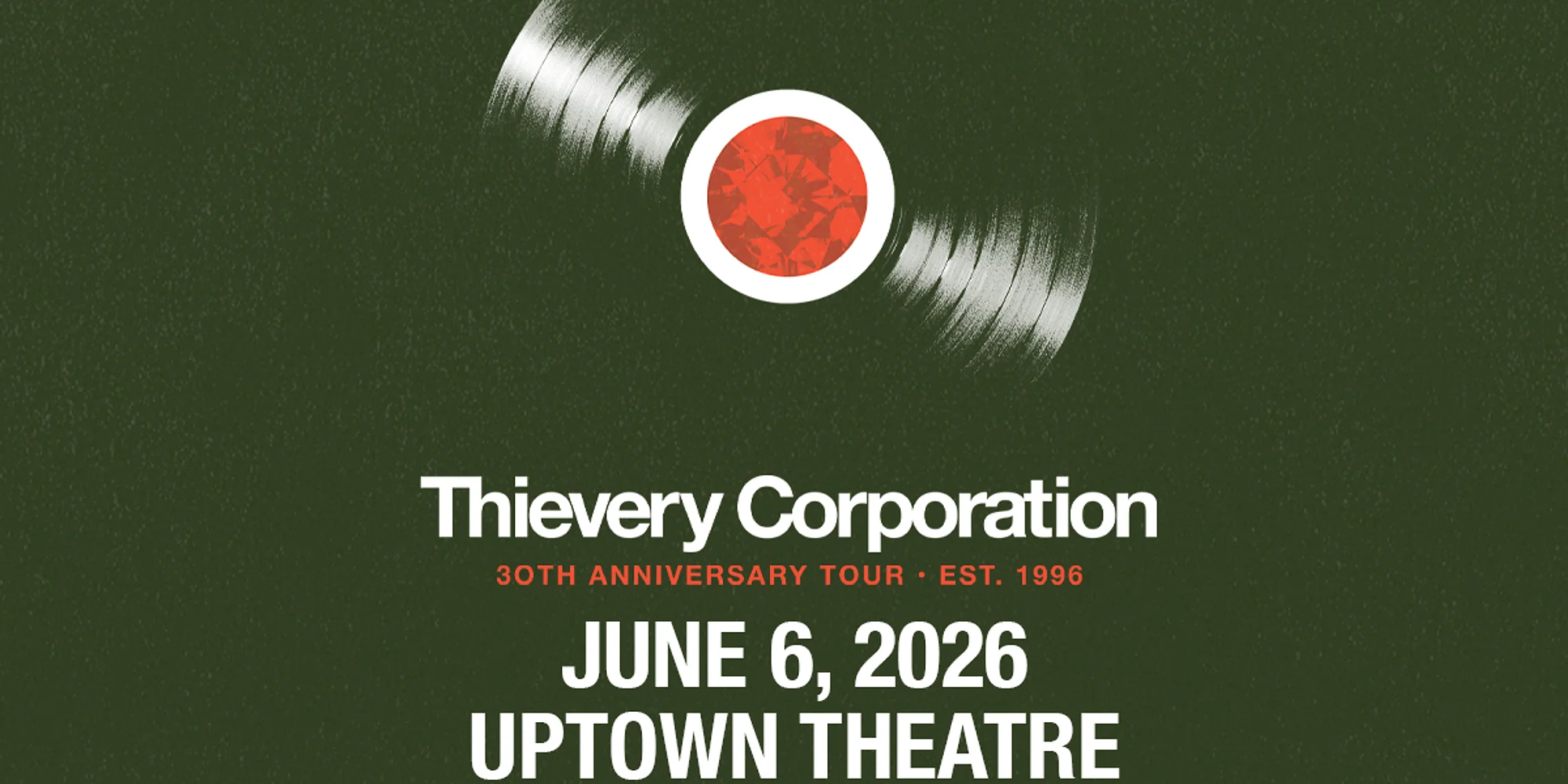 June 6, 2026 PURCHASE TICKETS HERE Doors 7pm/ Show 8pm Ages: 12+ Experience Thievery Corporation live as they celebrate their 30 year anniversary with an all encompassing retrospective show. Thievery Corporation is an internationally acclaimed electronic music duo formed in Washington, D.C., by Rob Garza and Eric Hilton. Known for their genre-defying sound, Thievery Corporation seamlessly blend downtempo, trip-hop, dub, bossa nova, reggae, soul, jazz, Middle Eastern, and Indian influences into a globally inspired sonic experience. Since their 1996 debut Sounds from the Thievery Hi-Fi, the group has built a reputation for lush productions, politically conscious themes, and immersive live performances featuring a rotating collective of musicians and vocalists from around the world. Albums such as The Mirror Conspiracy, The Richest Man in Babylon, Radio Retaliation, and Treasures from the Temple have cemented their status as pioneers of electronic fusion music. Renowned for their hypnotic grooves and atmospheric visuals, Thievery Corporation’s live shows are dynamic and ever-evolving, continually reimagined to reflect new influences, musicians, and interpretations of their expansive catalog. Year after year, they captivate and floor audiences worldwide with performances that feel both timeless and forward-looking, transforming dance floors and concert halls into transcendent, cross-cultural journeys. With decades of touring and a fiercely independent spirit rooted in their ESL Music label, Thievery Corporation continue to push creative boundaries while uniting global audiences through rhythm, melody, and shared musical consciousness.