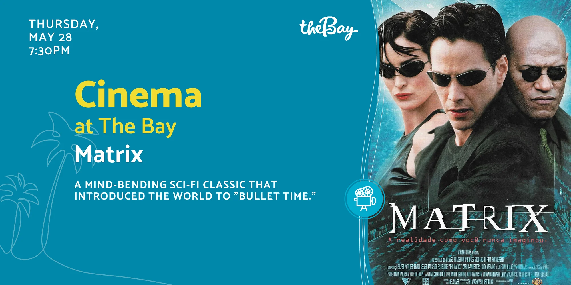 Cinema at The Bay: Matrix Thursday, May 28 CLICK HERE TO REGISTER Enjoy a free outdoor movie under the stars at The Bay! A mind-bending sci-fi classic that introduced the world to “bullet time.” (R) – When a beautiful stranger leads computer hacker Neo to a forbidding underworld, he discovers the shocking truth–the life he knows is the elaborate deception of an evil cyber-intelligence. Come hungry and thirsty! The Nest Café will be serving delicious food, fresh popcorn and refreshing drinks. Bring your blankets, chairs, and friends to add even more comfort and fun. Cinema at The Bay is presented by The Desenberg Foundation. Know Before You Go: The Bay park address is 1055 Blvd of the Arts, Sarasota FL 34236 Free parking is located around the site and all parking lots remain open — along Blvd of the Arts and in front of the Van Wezel, Municipal Auditorium and Blue Pagoda. Please avoid parking in designated Sarasota Orchestra parking areas. Construction of the new Town Square (located between the Municipal Auditorium and Art Center) is underway and affects pedestrian routes between the parking lot along N. Tamiami Trail and venues west of Van Wezel Way (incl. The Bay park, Van Wezel, and Holley Hall). Signs are posted to direct you between these locations. Please allow extra time to walk from and to your vehicle. Click here to view recommended pedestrian routes. Click here to learn more about Phase 2 of The Bay. Some events attract large crowds: Arrive early, be kind, and please be patient. All pets must be non-aggressive and on a leash at all times. Owners are expected to pick up after their pets. Please report any risky or unsafe behavior to the Sarasota Non-Emergency Police 24 hours a day (941) 316-1199. NOTE: In the event of inclement weather, this event will be CANCELLED. Notices will be communicated via The Bay website calendar, Eventbrite, Facebook and Instagram up to one hour before start time as unpredictable Florida weather changes quickly.