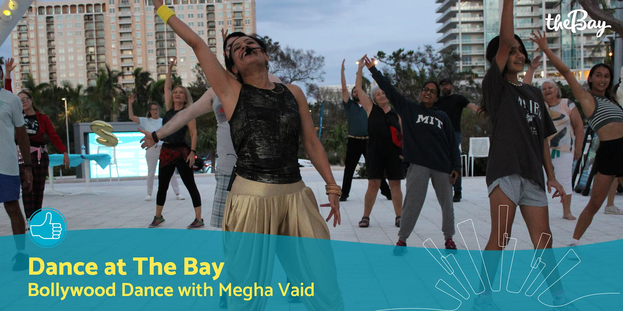 Dance at The Bay: Bollywood Dance with Megha Vaid Select Wednesdays CLICK HERE TO REGISTER BollyX is a Bollywood-inspired dance-fitness program that combines the dynamic music and dance of Bollywood, the film industry of India. Megha Vaid leads this high-energy class for all levels and will surely leave you sweating, smiling, and wanting more! Suitable for beginners and advanced dancers, singles and couples, kids and adults alike. Dress up if you please, wear bracelets, earrings, colorful shiny attire, and get ready to dance Bollywood style!