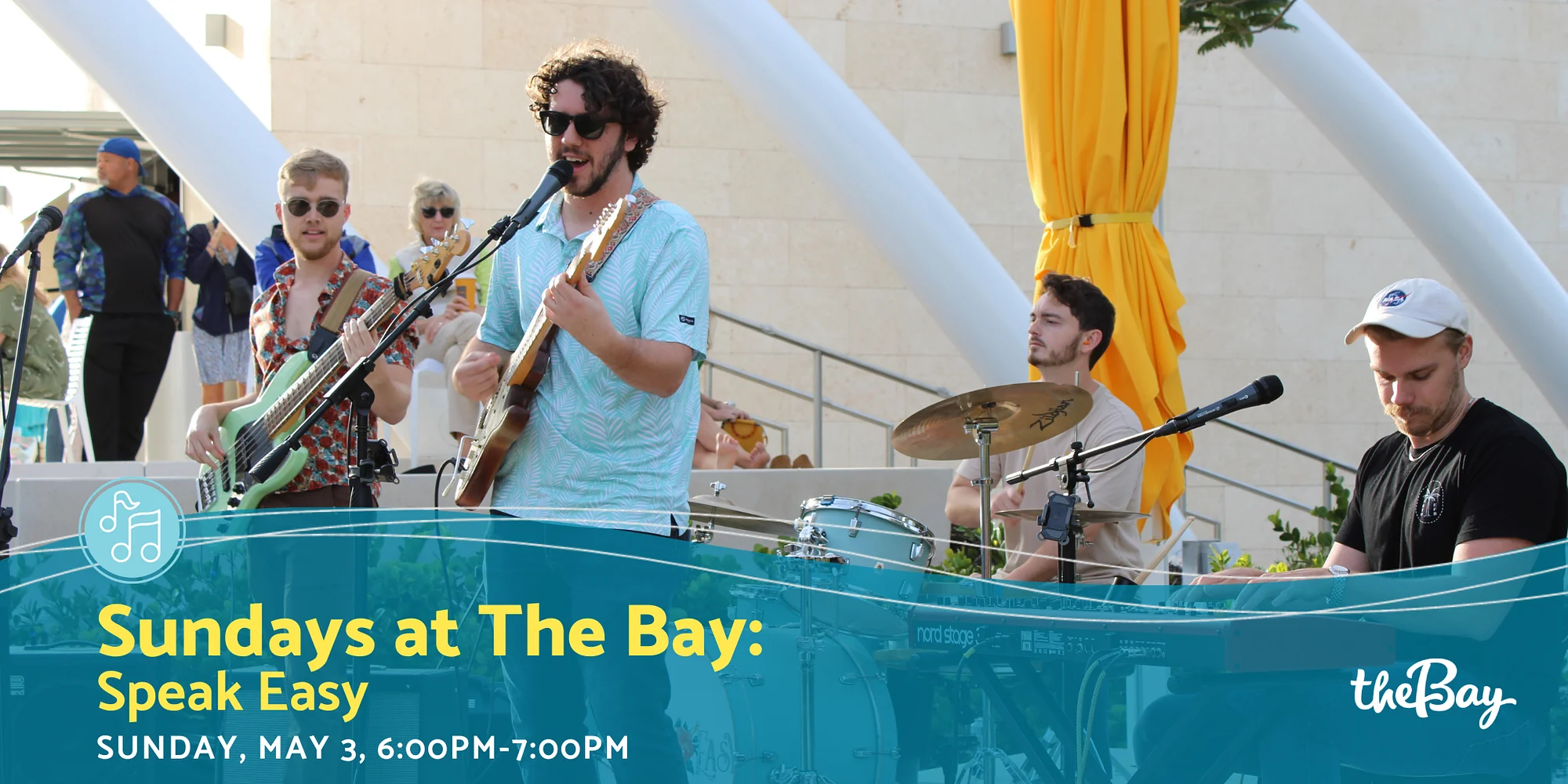 Sundays at The Bay featuring Speak Easy Sunday, May 3 CLICK HERE TO REGISTER Enjoy a free performance by Speak Easy at The Bay! About Sundays at The Bay Every Sunday, experience a talented local performer at this free, music concert series in the park. Enjoy a range of music genres. Don’t be surprised if you find yourself singing along or up on your feet dancing! About Speak Easy With effusive lyrics, danceable energy, tasteful electric guitar solos, tight harmonies, and groove-driven rhythm, this four-piece band delivers an undeniably positive vibe to any room. Fueled by sincere passion for making people move and strong desire to entertain, it is hard to find something not to like about these guys who speak nice and easy in person, too. With singer/guitarist Eric Yoder, singer/keyboardist K. Sahagian, singer/bassist Brendon Porter, and drummer Jack Clements, this group delivers the right mix of classic style, well-developed musicianship, and a sunny disposition that is winning over fun-loving fans of all ages. Know Before You Go: The Bay park address is 1055 Blvd of the Arts, Sarasota 34236 Free parking is located around the site and all parking lots remain open — along Blvd of the Arts and in front of the Van Wezel, Municipal Auditorium and Blue Pagoda. Please avoid parking in designated Sarasota Orchestra parking areas. Construction of the new Town Square (located between the Municipal Auditorium and Art Center) is underway and affects pedestrian routes between the parking lot along N. Tamiami Trail and venues west of Van Wezel Way (incl. The Bay park, Van Wezel, and Holley Hall). Signs are posted to direct you between these locations. Please allow extra time to walk from and to your vehicle. Click here to view recommended pedestrian routes. Click here to learn more about Phase 2 of The Bay. Some events attract large crowds: Arrive early, be kind, and please be patient. All pets must be non-aggressive and on a leash at all times. Owners are expected to pick up after their pets. Please report any risky or unsafe behavior to the Sarasota Non-Emergency Police 24 hours a day (941) 316-1199.