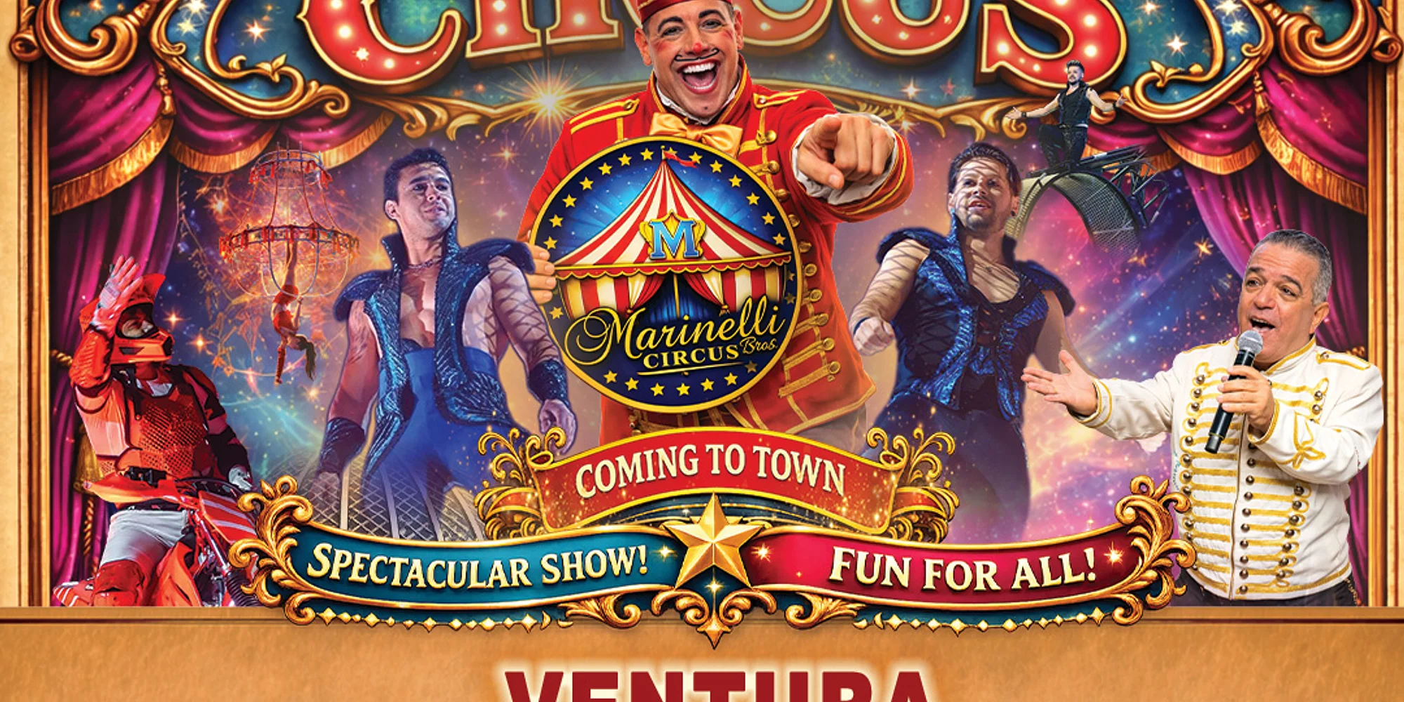 Step right up, Ventura, Marinelli Bros. Circus is rolling into Ventura County Fairgrounds April 3 – 12 with a brand-new experience packed with thrills, laughs, and larger-than-life family fun. Get ready for an unforgettable outing filled with jaw-dropping stunts, soaring aerial acts, hilarious clown moments, and nonstop excitement under the big top. This 90-minute, family-friendly show is built for kids, parents, grandparents, date nights, and anyone who still enjoys a little wonder! 4/3 – 7:30 4/4 – 1pm, 4pm, 7pm 4/5 – 12:30pm, 3:30pm, 6:30pm 4/6 – 6:30pm 4/8 – 7pm 4/9 – 7pm 4/10 – 7pm 4/11 – 1pm, 4pm, 7pm 4/12 – 12:30pm, 3:30pm, 6:30pm Admission: $20 – $70 Parking: $10 Get tickets here!
