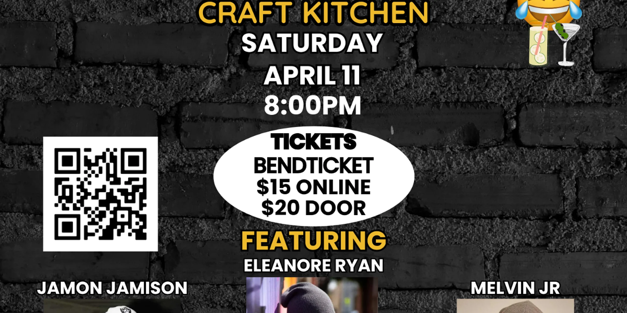 Comedy at Craft Kitchen and Brewery Join Bits N Skits Productions for another night of laughter! Come relax and laugh with us after a long work week with some comedy! Try some of Craft’s delicious, made from scratch BBQ paired with a variety of brews and non-alcoholic options as well! “Our brisket is smoked fresh daily, no reheats. When it’s out, it’s out! Ingredient focused, we let you sauce the Q!” We hope to see you there! Craft Kitchen and Brewery Saturday, April 11 8pm Host: Christine Keefer Featuring comedians: Jamon Jamison and Melvin Jr Headliner: Eleanore Ryan Eleanore Ryan is five feet tall with ten feet of character. She is based out of Salem, OR and has traveled to preform all over the PNW. After retiring as an Olympian of an addict, she strives to make change by telling hard truths via standup comedy. Despite being a tiny sized human, her comedy is known to pack a big punch. Her humor is great for unpacking everyday life. Covering topics like sobriety, faith, parenting and sexuality; Eleanore doesn’t just tell jokes, she testifies. Jamon- started doing Comedy in Northern California at the Savage Henry Comedy Club soon became a local Hall of Fame comedian at the savagery and now I’m taking my act on the road or something cheesy like that Melvin- Melvin Jr Oakland Ca native combines high energy, witty humor, and real life stories with a dash of sexy. · 21+ only · $15 online/$20 at the door