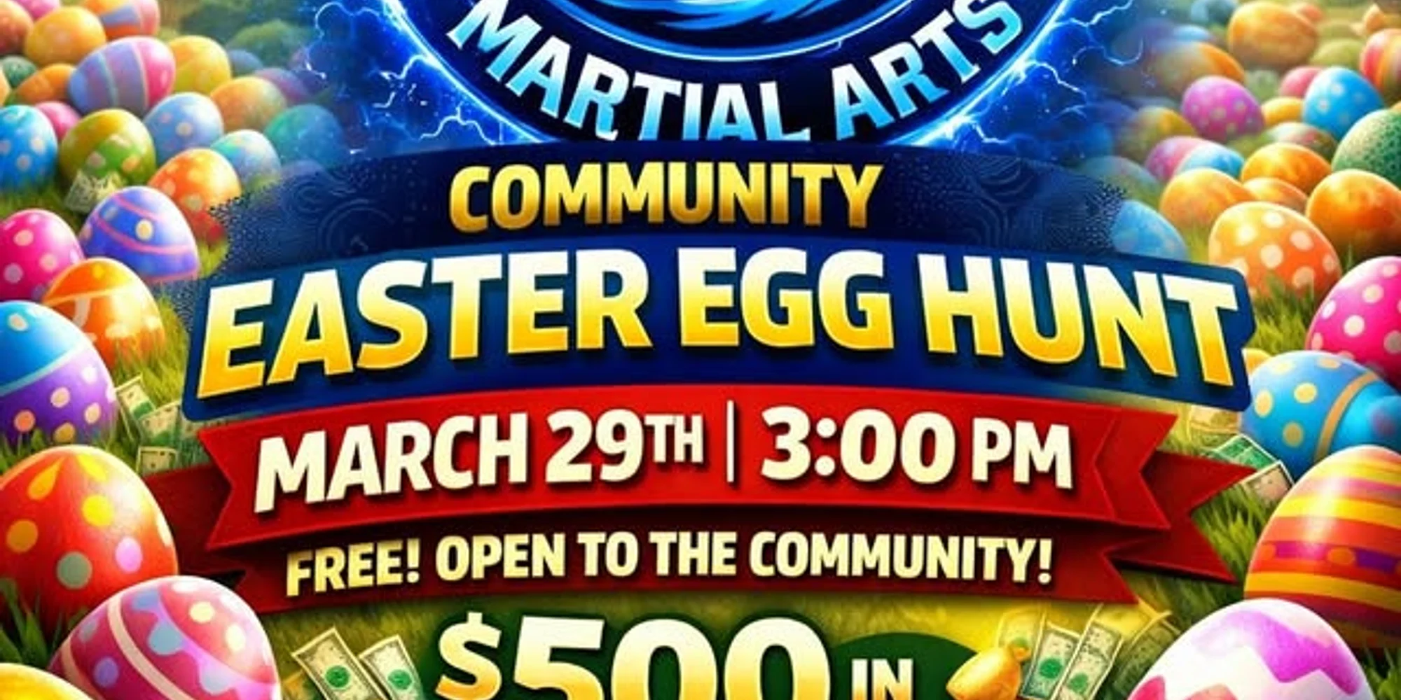 Join us once again for our AWESOME Community Easter Egg Hunt! Over 5,000 eggs, close to $500 in cash prize eggs, food trucks, inflatables and more! Invite your friends!