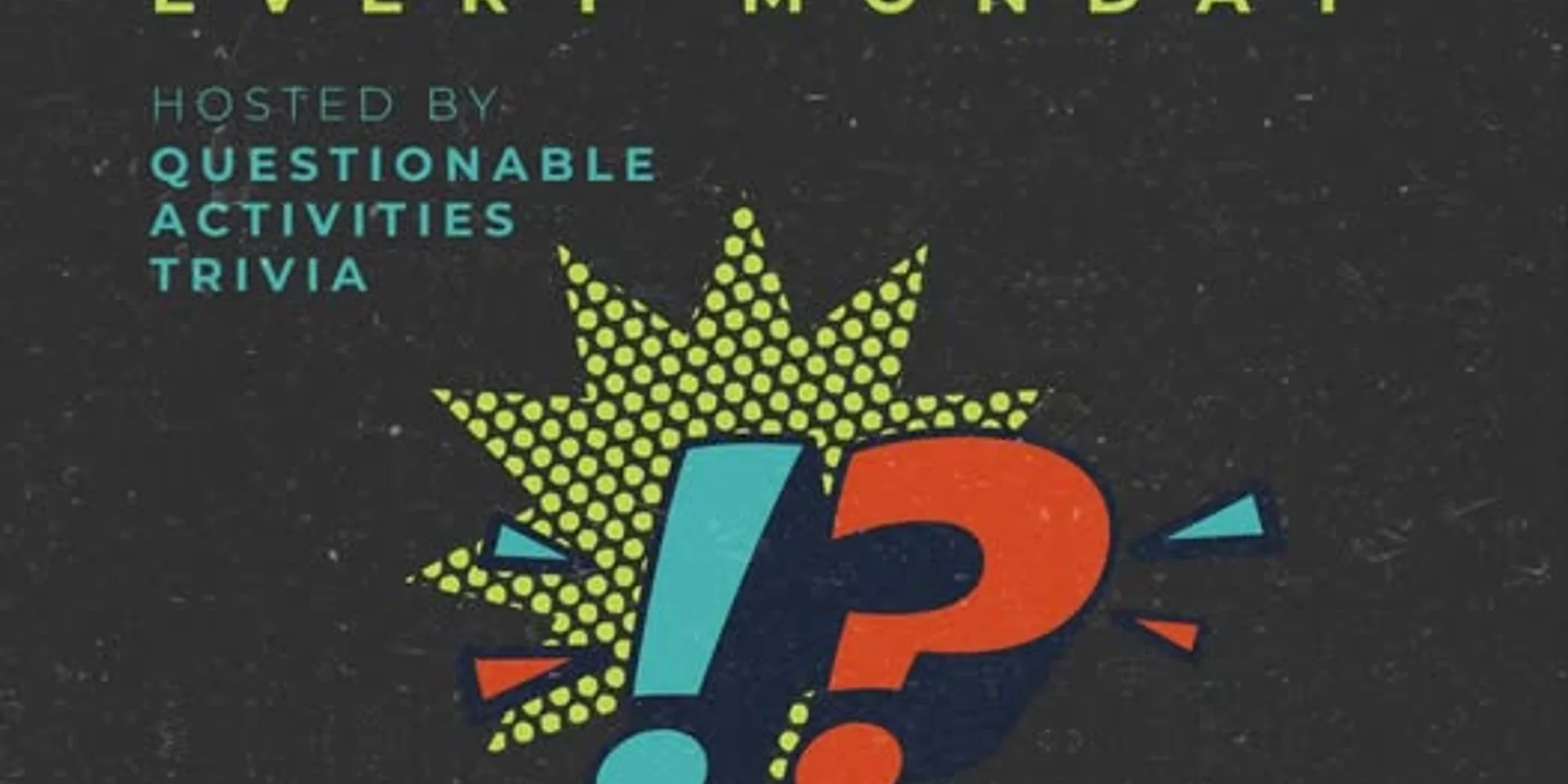 Weekly on Mondays. Hosted by Drew of Questionable Activities. Trivia inside Rebel Rebel Studio & Lounge. Bring a team or join on when you arrive. All ages! Free to play! Prizes for winners! Doors open at 6pm. Trivia from 7pm-9pm Cash bar + food truck available.
