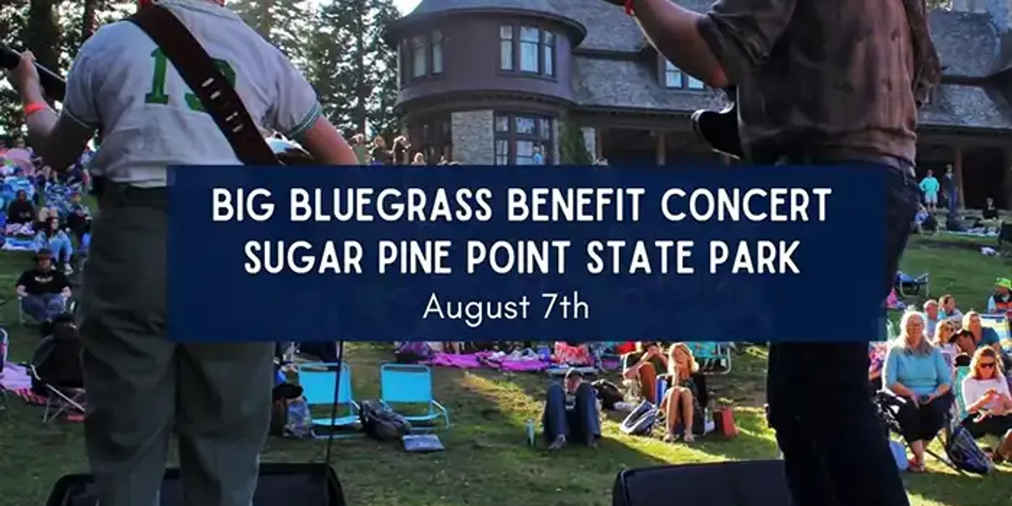 @ A BLUEgrass benefit concert supporting our Tahoe State Parks! Friday, August 7, 2026, 4:00-8:00 pm. Dance to professional live bluegrass bands overlooking the Big Blue at Sugar Pine Point State Park. Tasty food vendors, beer, and wine are available for purchase. Doors open at 4 pm. Music begins at 5 pm and goes until dark. Parking is $10**. Parking is limited. We encourage car-pooling and the use of public transportation. We encourage you to help us move the lines faster by purchasing your State Park parking pass ahead of time. If you purchase PREPAID PARKING you MUST bring this receipt with you to show at the kiosk. Sorry, no refunds. Tap here for more information on their website. Thank you to our sponsors: Truckee School of Music, Lake Tahoe Dance Collective, Mountain Hardware & Sports, Rotary Club of Tahoe City, Sticker Pack, and Tahoe.com More information here. Details Date: Time: