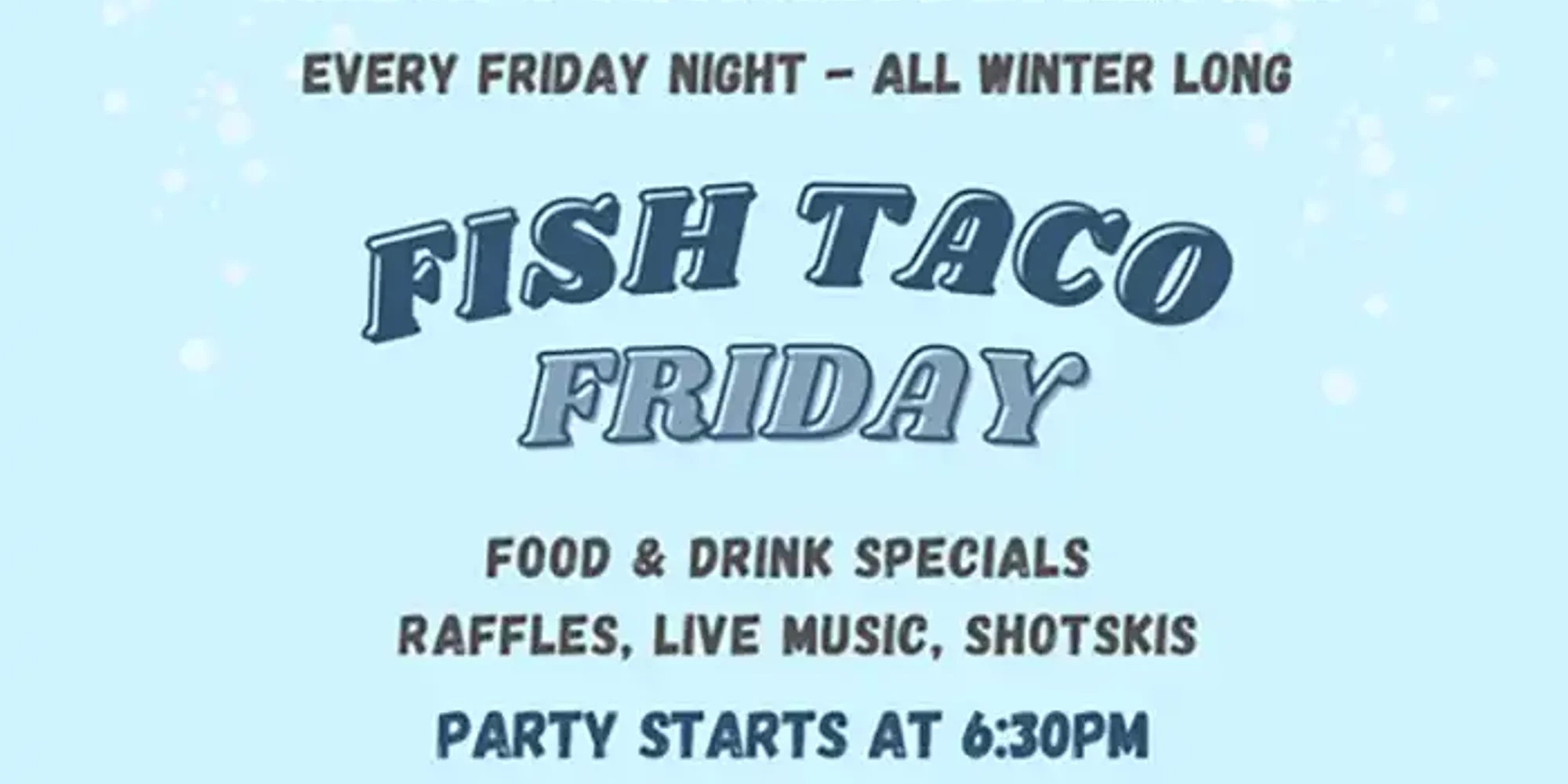 @ Huge Après Ski Party to cap a fantastic day on the slopes. Great food & drink specials from 6:30-10:00 pm on Fridays. Raffle prizes from our local businesses all night, including a grand prize snowboard. The longer you stay, the more you win! Mark your calendars! Friday nights. Be there or be square! Details Date: Time: