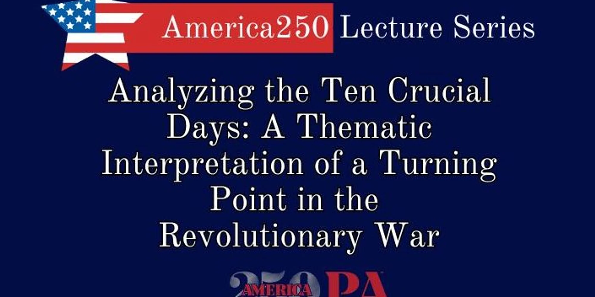 at Historic Rock Ford’s America250 Lecture Series presents “Analyzing the Ten Crucial Days: A Thematic Interpretation of a Turning Point in the Revolutionary War.” Presenter David Price examines the Winter Campaign of 1776-77 — one of the most stories in the annuals of military history. David’s narrative differs from earlier works on the subject that are largely a chronological account of this period. Copies of his new book “Winning the Ten Crucial Days” will be available for purchase and signing. This presentation will begin at 2 PM in the Langmuir Education Room located on the first floor of the Rock Ford Barn. Prior to the lecture, attendees may visit the Snyder Gallery and our 2026 Focus Exhibit. The Snyder Gallery closes at 4 PM. Historic Rock Ford View Organizer Website Add to calendar Google Calendar iCalendar Outlook 365 Outlook Live