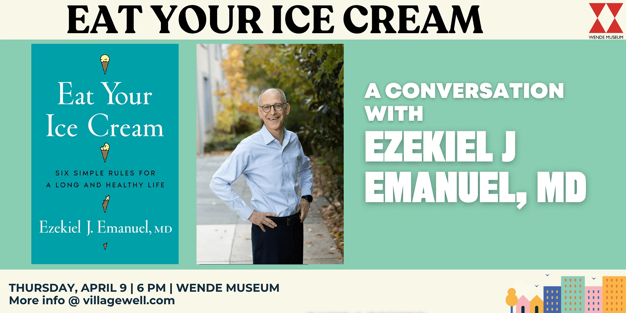 Bestselling author Ezekiel J Emanuel shares science-based tips on aging happily and healthily. Join us at the Wende Museum for a conversation with Ezekiel J Emanuel, MD, author of Eat Your Ice Cream! Dr Emanuel will explore aging in a dignified and enjoyable manner, and provide actionable tips for living a longer, healthier life. Decades of medical experience have made Dr Emanuel one of the leading experts in his field. Come hear what you can learn from that experience, and how you can implement it in your own life! About the author: Ezekiel J. Emanuel, MD is a vice provost and professor at the University of Pennsylvania. A bioethicist, health policy expert, and oncologist, he was one of the architects of the Affordable Care Act. He is a regular guest on CNN and MSNBC and often contributes to the New York Times, Washington Post, Wall Street Journal, and Atlantic. He lives in Washington, DC. About the book: Everyone wants to live a full and healthy life—and every day brings a tidal wave of attention-grabbing misinformation, faddish ideas from “wellness” influencers, and bizarre advice from news outlets over-extrapolating the results of tiny, outlier studies. The “Wellness Industrial Complex” prescribes conflicting and complicated regimens while promising us more time to enjoy in the future—though it sure is demanding a lot of time right now. But what actually matters most to our health and longevity? What has the most robust, actionable evidence? What’s the junk you can skip? In Eat Your Ice Cream, renowned physician Ezekiel J. Emanuel argues that life is not a competition to live the longest and that “wellness” shouldn’t be difficult; it should be an invisible part of one’s lifestyle that yields maximum health benefits with the least work. Dr. Emanuel cuts through the noise with wit and good humor, giving readers just what they need: simple, high-impact, evidence-based guidelines on such issues as alcohol consumption, food and nutrition, exercise, sleep, mental acuity, and social engagement. Resisting the tide of the latest trends to extend life at all costs, Eat Your Ice Cream reveals that many of the tools for a long, healthy and meaningful life are already within reach. Pairing common sense with uncommon wisdom based on his decades of expertise and experience, Dr. Emanuel helps us consider which lifestyle changes are worth making and how to most easily implement them for longer, healthier, and happier lives. Readers will come away with greater clarity and a deeper understanding of what really matters for well-being—connection, purpose, and sustainable choices backed by rigorous science.