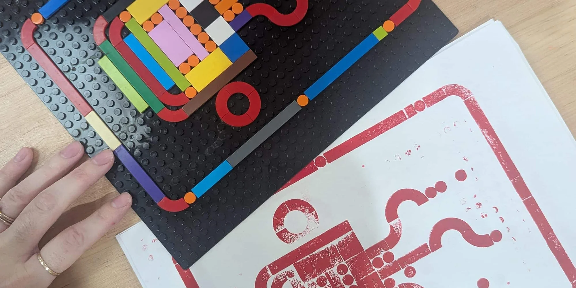 Hands-on lego printmaking art class in the Book Arts Studio! Get creative in our lego printmaking Class! Design your own relief print with lego blocks using a variety of shapes and sizes to create a pattern or stylized image. We’ll ink up our finished design lego plates and print onto paper. Each participant can make a small edition of prints, a few copies, approximately 5″x7″. You will be given hands-on demonstrations and assistance every step of the way, with lots of time for figuring out how you want your design to look. Or, come with a design idea ready to go! All ages and experience levels are welcome, participating children must be accompanied by an adult. Things to Note: • Makers of all skill levels are welcome. This class is suitable for ages 10+ • All necessary tools and materials needed to participate are provided. • It’s helpful to bring your own simple image (printed or digital) or an idea of what you’d like to carve into your linoleum block! • A fabric item (tea towel or tote bag) is provided, but feel free to bring an additional item as desired. • Please read our ‘Plan Your Visit’ page to review our health & safety procedures. Any questions about the class please email curious@wnybookarts.org Talia Ryan (she/her) is a printmaker, and teaching artist at Buffalo Academy of Science High School. She is a lifelong resident of Buffalo, NY; and in addition to her residency show at the WNY Book Arts Center in September 2021, she has exhibited work at PAUSA Art House, the Castellani Art Museum, and the Nazareth College Colacino Gallery. Instagram / Website / Classes