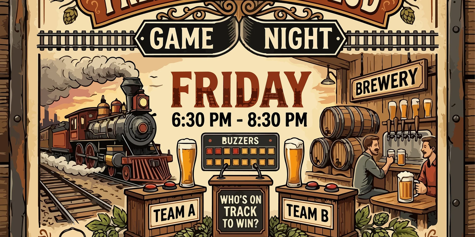 Friday is our first ever Freight Train Feud from 6:30-8:30pm hosted by Tavern Tactics Events. Don’t worry if you have stage fright, this game is played in groups of friends, it is super easy and free to play. We will play multiple rounds with each winner receiving a great prize! For more on Tavern Tactics Events check out their page here.