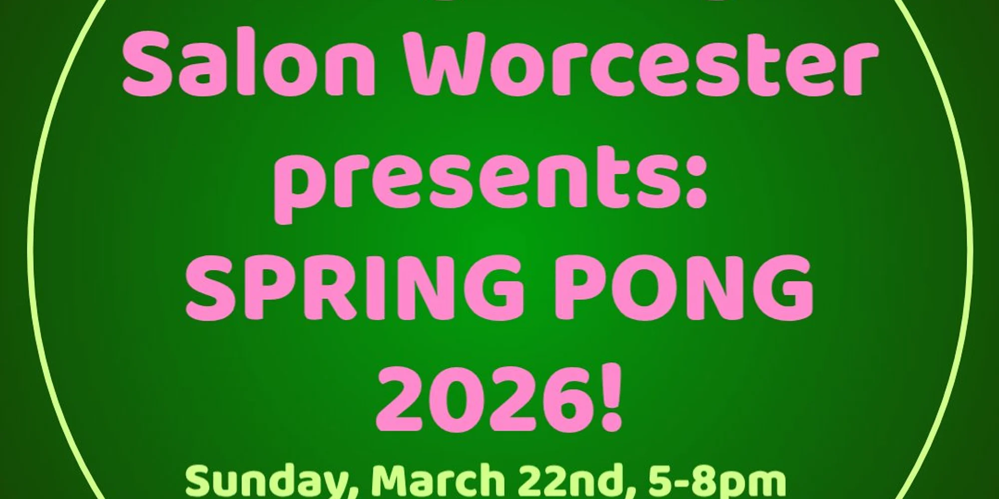 PING PONG SALON WORCESTER Presents: SPRING PONG 2026! SUNDAY MARCH 22, 5-8pm The White Room 138 Green St, Worcester MA. Free and open to the public! Join us for a SPRING PONG 2026 in our contemporary cozy celebration hall for gathering with old and new friends, art enjoyment, snacks, hot tea, chess games, Mexican Bingo, and for those who know - the serious or not so serious ping pong! All Levels, All Ages, All Fun, For Players, Spectators and Art Enthusiasts!! Come by for playing, hanging out, Rundlauf, roundabout, learning, teaching or just watching and meeting friends, relaxing in the hammocks, AND viewing spectacular and cool artwork on our walls. We provide extra paddles, three tables, 3*** ping pong balls, complimentary snacks and chai tea.